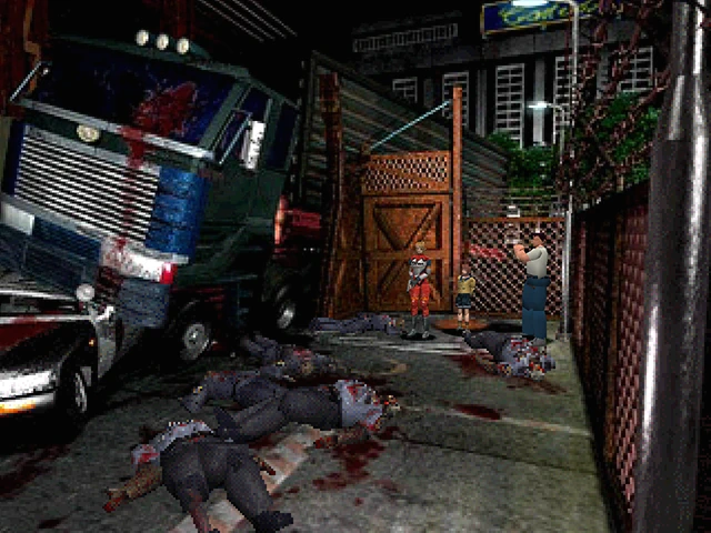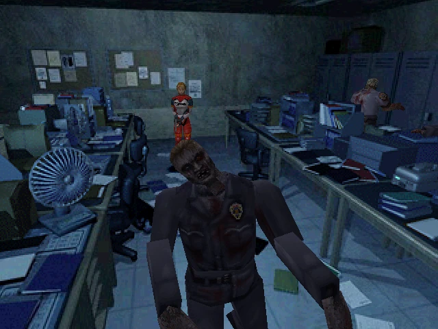 Après on retrouve les fondamentaux de la série avec sa jouabilité si particulière, ses mécaniques de jeu, ses décors précalculés en images de synthèses, ses sprites en 3D, ses zombies et même de nouveaux ennemis (comme des gorilles zombifiés). On se retrouve donc à arpenter les couloirs de la R.P.D. (le commissariat de Racoon City), et on se dit vite que le jeu aurait pu être très sympa. Si parfois le son ne fonctionne plus du tout (le meilleur étant le gros bug de sprite dans le bureau du chef Irons :), à d'autres moments on entend des musiques totalement originales qui collent très bien à l'ambiance du titre. De même, le peu qu'on nous laisse apprécier, se révélait déjà très prometteur avec des cut-scenes sympatoches, de jolis (et orignaux !) décors et toujours cette ambiance fabuleuse, que la série s'est évertuée à perdre au fil des suites.