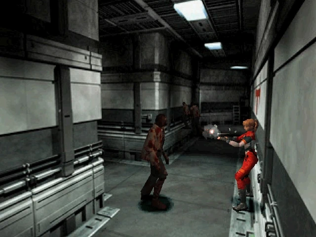 Pour en revenir à la beta de ce Resident Evil 1.5, une fois le fichier BIN/CUE (ou ISO, c'est selon) téléchargé, et l'émulateur configuré, que donne vraiment cette préversion ? Et bien en pressant "Select" on peut passer d'une map à une autre (c'est une sorte de "debug mode"), ce qui est bien pratique car bien souvent on reste coincé dans le décor, parce que nos 2 personnages jouables (Leon et Elza) ont tendance à monter sur tout et n'importe quoi (meuble, bureau, caisse en bois...) avec bien souvent l'incapacité d'en redescendre. De même on n'a pas de munitions pour nos armes (heureusement il reste le couteau) et lorsqu'on en croise, Elza/Leon monte sur la table au lieu de prendre les précieuses cartouches (du moins moi, je ne suis jamais arrivé à les prendre). Bugué jusqu'à la moelle (version beta oblige), dans certains décors la 3D ne s'adapte même pas à la perspective, les bugs sont très nombreux et les scènes scriptées (comme lorsqu'on rencontre Ada) sont expédiées et manquent cruellement de travail. Normal, je vous rappelle qu'on parle ici d'une version qui était en cours de développement.