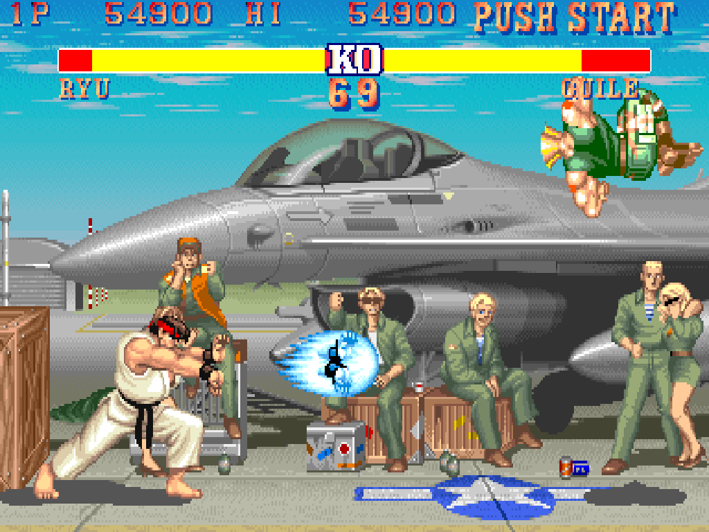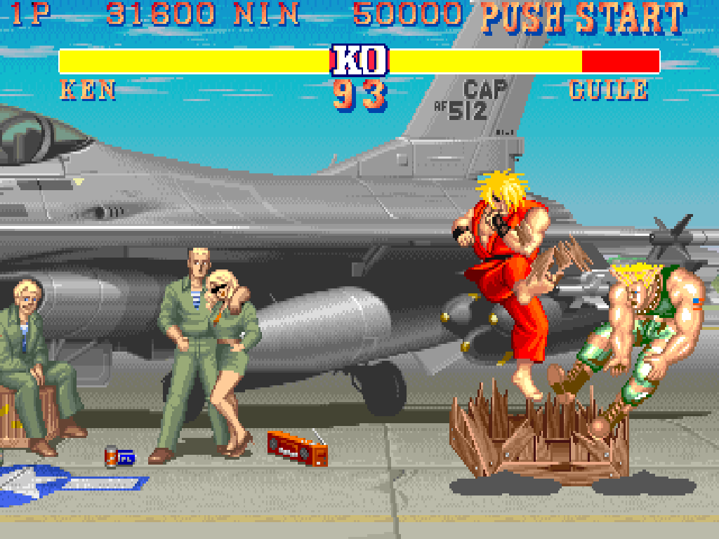 Chaque personnage à sa propre histoire et son épilogue bien à lui Street Fighter II exploite un panel de 6 boutons (sur 2 rangées de 3 touches), ce qui est énorme pour un titre de 1991, puisque la plupart des jeux n'en utilisaient que de 2, voire 3 maximum. Pourquoi 6 ? Et bien la rangée du haut sert à donner des coups de poings sur 3 niveaux de puissance, idem pour la rangée du bas qui sert aux coups de pieds. Ça a d'ailleurs posé pas mal de problèmes aux exploitants, car leurs bornes n'étaient pas équipées pour recevoir un tel jeu. Certains ne configuraient le jeu qu'en 3 boutons (tout poing, tout pied voire même 1 de l'un puis 2 de l'autre - c'est du vécu), d'autres ne disposaient que de 4 boutons et proposaient donc coups forts et coups faibles, évinçant ainsi les intermédiaires. Le premier Street Fighter demandait déjà à l'époque un panel de 6 boutons, mais son succès fut relatif et peu de bornes furent équipées exclusivement pour lui. Mais cette fois la donne est très différente, les exploitants voulaient absolument faire tourner leur exemplaire, avec la promesse que tous les soirs les caisses des bornes seraient pleines !