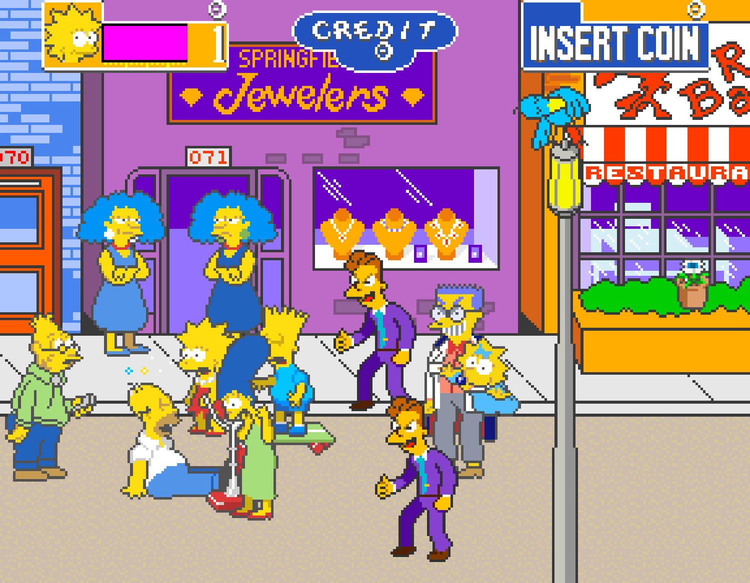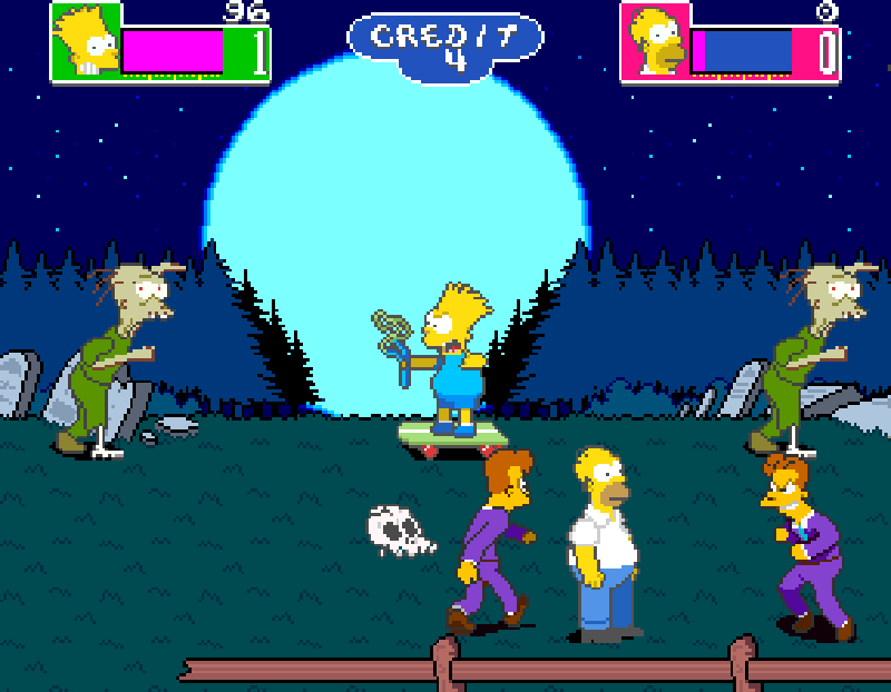 En bref, ce n'est clairement pas un grand titre puisqu'un Captain Commando lui est largement supérieur, quand Final Fight garde sa place de maitre-étalon (on pourrait aussi nommé l'excellent Streets of Rage, même s'il n'est sorti que sur console). Mais ces jeux ont en commun leur aspect violent et extrêmement sérieux, là où justement The Simpsons : Arcade Game est avant tout une bruyante réunion de famille, une franche rigolade à partager à plusieurs, un bouillon de bonne humeur certes imparfait, mais donnera à coup sûr le sourire.