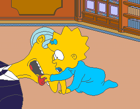 Un jeu de baston ? Arfff, le problème c'est qu'elle gagne tout le temps (je fais tout pour être un bon papa ^.^), un Metal Slug ? Non... Un World Heroes ? Non plus... Non non, pas un Street Fighter, c'est bon j'ai eu ma dose. Et là elle me dit, "tiens, et si on se faisait le fameux Simpsons qu'on repousse à chaque fois ?". J'avoue, j'aime pas trop quand les gosses ont raison, mais je m'incline devant sa clairvoyance. Nous voilà donc en train de lancer le fameux jeu The Simpsons (oui avec un "S" à la fin car les amerloques font les accords sur les noms famille, contrairement à nous).