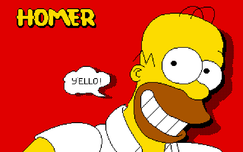 Le scénario est évidemment bidon, mais on apprécie une mise en scène efficace qui relie en plus les niveaux le départ on a une sympathique intro, qui reprend celle de l'animé. Bien évidemment on aurait pu avoir une vidéo, bien évidemment celle-ci n'est qu'à peine animée, mais bon sang, le résultat est diablement efficace ! D'autant que derrière, on a la musique du générique et l'ensemble passe hyper bien ! Ce n'est pas facile de juger un jeu qui aujourd'hui a plus de 35 ans (paye ton coup de vieux) mais déjà je reste très impressionné par cette intro, aussi fidèle que possible au design et à l'ambiance du dessin animé. On presse Start et voilà qu'une seconde intro nous dévoile que Smithers vient de voler un gros diamant, pour le compte de M. Burns. Les Simpson passant par là, dans une abracadabrante scène, voilà que le diamant vole en l'air et atterrit dans la bouche de Maggie, remplaçant ainsi sa totoche. Paniqué, Smithers décide de kidnapper l'enfant sous les yeux des 4 autres membres de la famille. C'est rapide, c'est net et explicite, bref c'est plutôt bien fait et assez impressionnant pour l'époque.