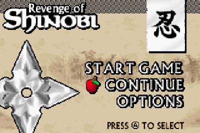 Soyons clair tout de suite : ce jeu n'est pas le portage du hit de la Mega Drive ! C'est un titre original... avoir tester Shinobi X sur Saturn, et après avoir réviser tous mes classiques sur cette série, je me félicitais de connaitre enfin la saga au complet. Sauf que lorsque j'ai ouvert Wikipedia, l'encyclopédie en ligne s'est fait un malin plaisir de me donner tort. Déjà parce que je connais pas (encore ?) Nightshade où on joue une femme ninja (ce jeu faisant suite au Shinobi de la PS2 que lui, j'ai testé il y a bien longtemps), je ne connais pas (encore ?) la fameux Shinobi 3D sorti sur 3DS, mais le sujet du jour n'est autre que The Revenge of Shinobi, sorti sur Game Boy Advance en 2002. Avec un nom pareil, forcément vous avez déjà la tête qui tourne et les yeux qui brillent, sauf que... Sauf que cet épisode n'est pas "canon". Il n'est pas considéré comme un spin-off, il n'est même pas inclus dans la chronologie de la série. Aïe, ça commence mal. Mais alors, pourquoi l'avoir appelé ainsi ?