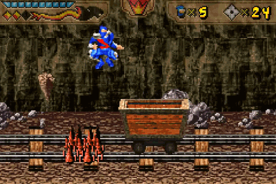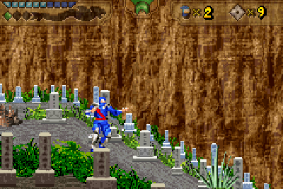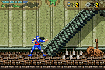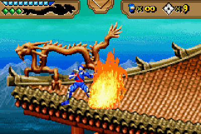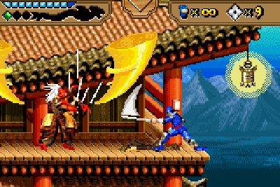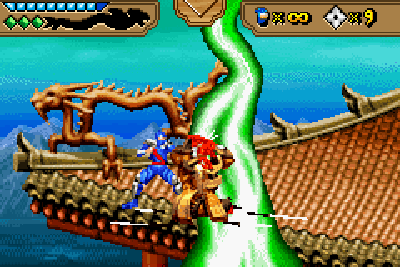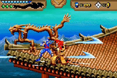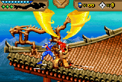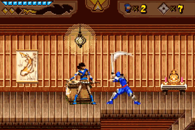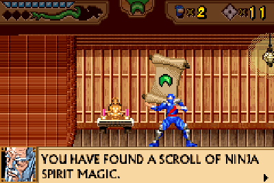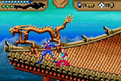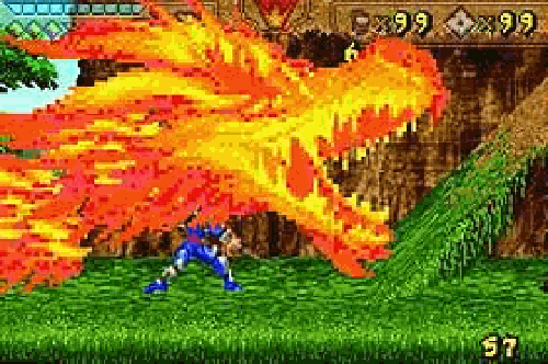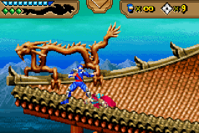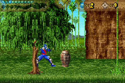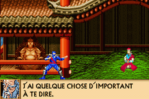 Car au départ, les ninjutsus de ce jeu ne servent clairement pas à grand-chose (j'aurai par exemple apprécié qu'il y en ait un qui remonte un peu la santé, ça aurait été pratique). Techniquement, nous sommes en présence d'une grosse cartouche de 64 Mb. Alors ça parait beaucoup si on la compare aux jeux sur 16-bits (qui dépassaient très rarement les 32 Mb) mais il ne faut pas oublier que la GBA est une console 32-bits (et oui) et que les cartouches de 64 Mb sont assez courantes sur le support : Duke Nukem Advance, Metroïd Fusion, Sonic Advance, DOOM, Super Mario Advance 4... vous voyez, ça n'a rien d'exceptionnel.