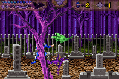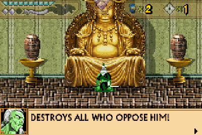 Sur l'écran de la GBA, les graphismes sont pas si mal. Notre personnage est même superbement animé fil du jeu on pourra les upgrader, ils gagneront en puissance, mais avant ça, leur portée est tout simplement ridicule ! Il faut être au corps à corps, c'est-à-dire sur l'ennemi, pour lui infliger des dégâts ! A ce compte-là, autant frapper au sabre, ça ira plus vite et vous prendrez moins de risque. J'aurai largement préféré retrouver les pouvoirs habituels tels que l'écran de protection (ça aurait été sacrément pratique sur les boss) ou encore ses dragons de flammes qui explosent tout le monde à l'écran. Là ça a de la gueule, là c'est efficace !
