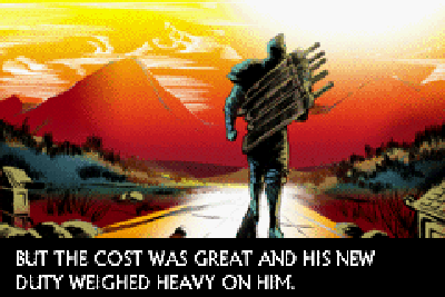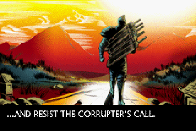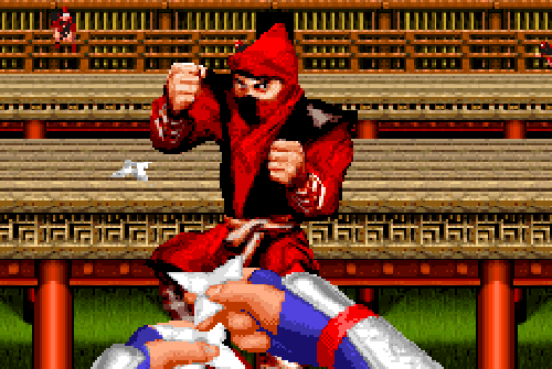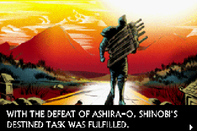 Bien, on presse Start et voilà qu'on nous propose une très jolie intro. La musique est vraiment superbe et on nous raconte que fut un temps, le démon Ashira-O régnait sur la Terre. Pour arrêter sa folie, il fut fait prisonnier dans 5 épées, détenues par les 5 plus puissants Shoguns du Japon. Mais le maléfice était si puissant, que chacune de ces épées a réussi à corrompre chacun des Shoguns. Résultat ce n'est plus 1 mais 5 tyrans qui sont désormais au pouvoir. De votre côté vous, le "shinobi" (un "no name" de l'espèce la plus commune), obéissant à votre vénéré maitre, vous allez devoir affronter chacun des Shogun afin de récupérer les 5 épées maléfiques...