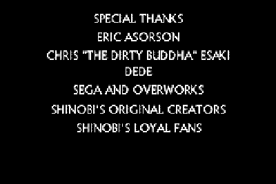 Pour pigeonner les gens qui pensaient retrouver un portage du hit Mega Drive ? Parce qu'on ne va pas se leurrer, porter un tel nom est purement markéting, à la limite il aurait pu s'appeler Shinobi "kélkechoz" mais lui donner le nom de l'épisode qui a fait décoller la série, celui-là même qui a donné les premières lettres de noblesse à la 16-bits de SEGA, franchement c'est fort de café. Mais bon, c'est SEGA qui édite le jeu, c'est donc que quelque part, le nom a été adoubé, validé... C'est sans doute après que le jeu a été désavoué, sûrement suite à son insuccès.