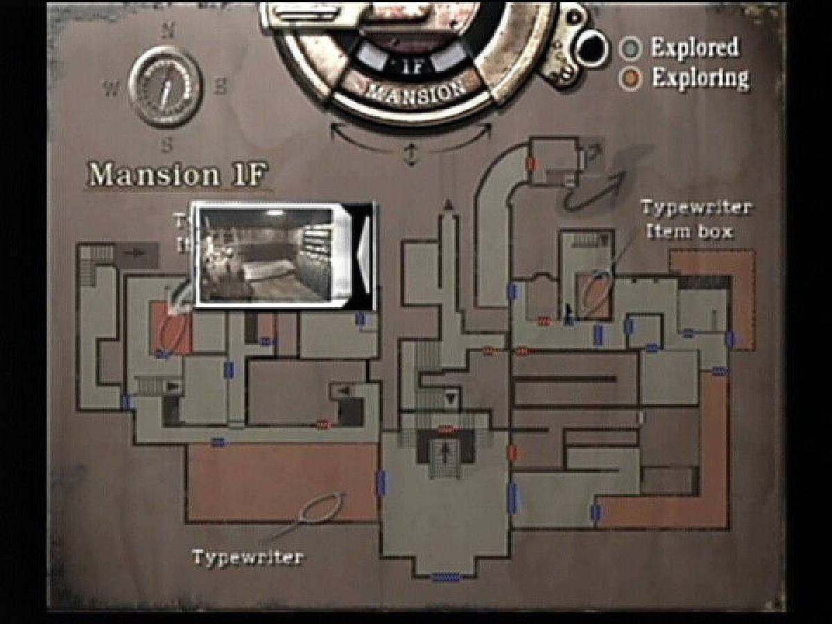 Après tant d'années, le principe des Resident Evil reste intact, puisque l'épisode qui a révolutionné la série est bel et bien le 4, qui ne sortira que 3 ans après celui-ci. Des machines à écrire pour sauvegarder, des coffres pour poser tous ses objets (merci, ça manquait dans Resident Evil Zero), des énigmes, de l'action et beaucoup d'exploration. Mais il y a tout de même 4 nouveautés dans le jeu. La première c'est que la carte (accessible via la gâchette droite) est plus "intelligente" qu'avant. Ainsi, s'il vous reste un objet à trouver dans une pièce, vous le saurez de suite. Les portes sont nomenclaturées et le tout parait plus lisible. Sans être aussi précise que dans Resident Evil Zero (où on y voit le moindre item à récolter), j'ai trouvé cette évolution sympa.