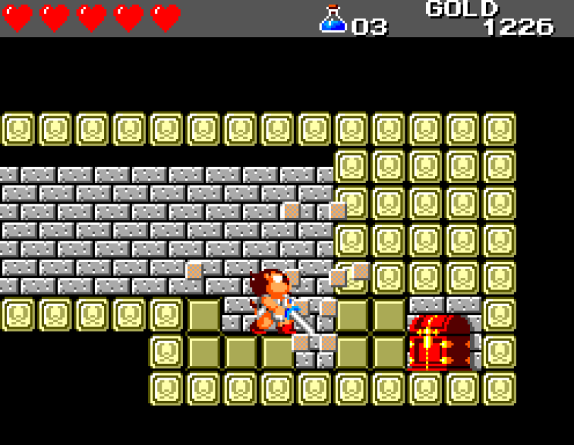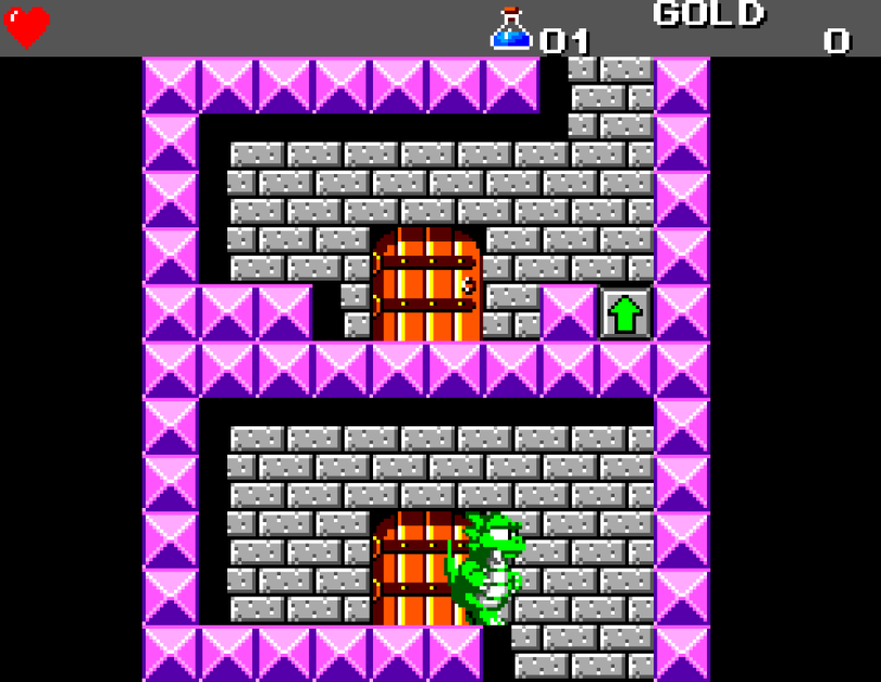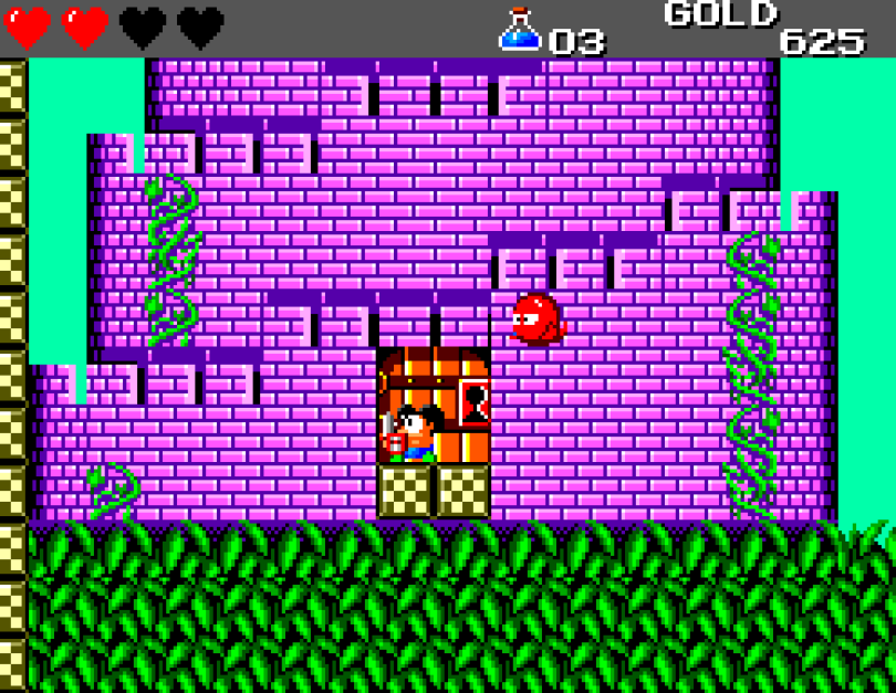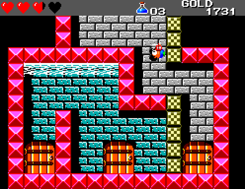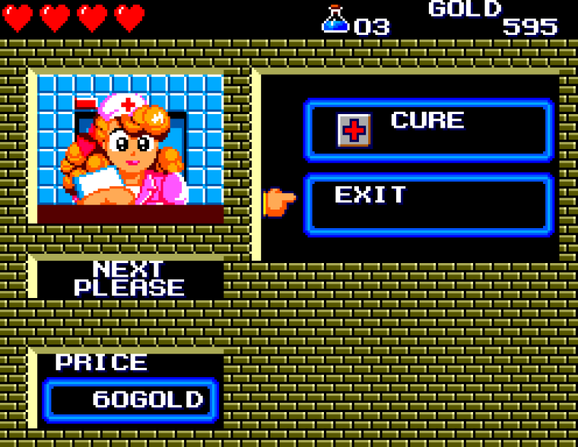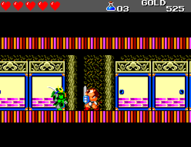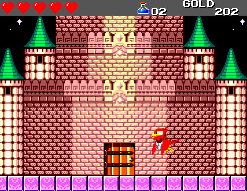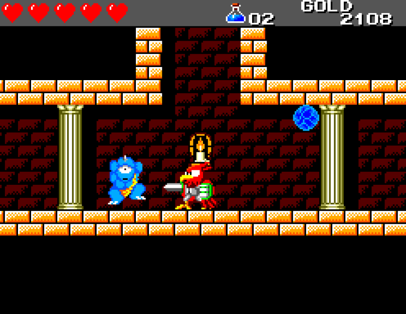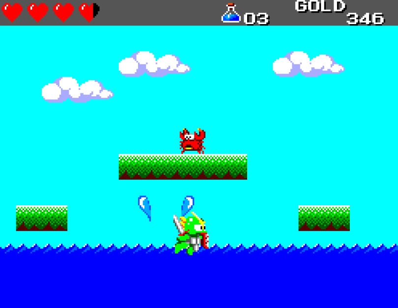 Si on commence le jeu tranquille avec le plein de cœurs et un équipement de folie, dès qu'on sera transformé en dragon/lézard on déchantera vite (et oui, faut bien faire un jeu) puisqu'on commencera tout en bas de l'échelle, donc autant dire avec rien. Il faudra alors parcourir ce monde d'heroïc-fantasy pour trouver des cœurs (afin d'augmenter sa barre de vie), tuer des monstres histoire de récolter le plus possible d'argent (intitulé "gold" dans le jeu) et ainsi faire évoluer son équipement, trouver des passages secrets généralement riches en bonnes surprises (argent, élixir, items) et défaire un à un les boss du jeu, afin d'être à chaque fois transformé.