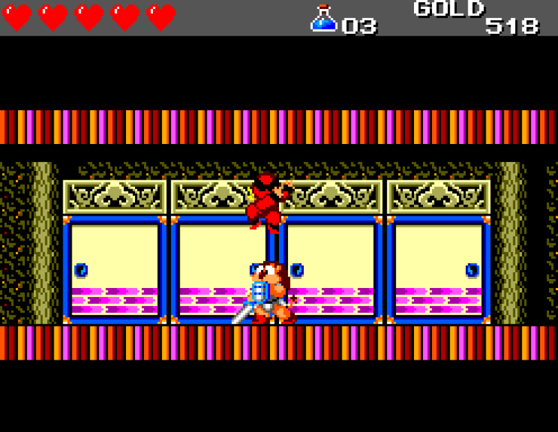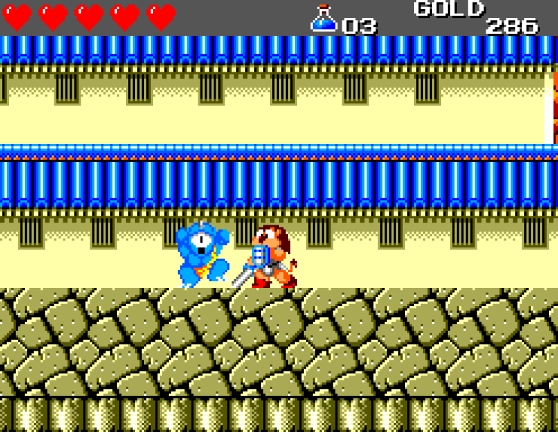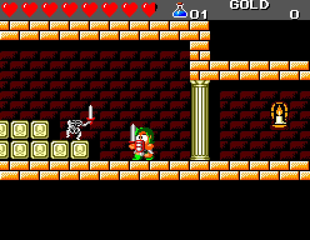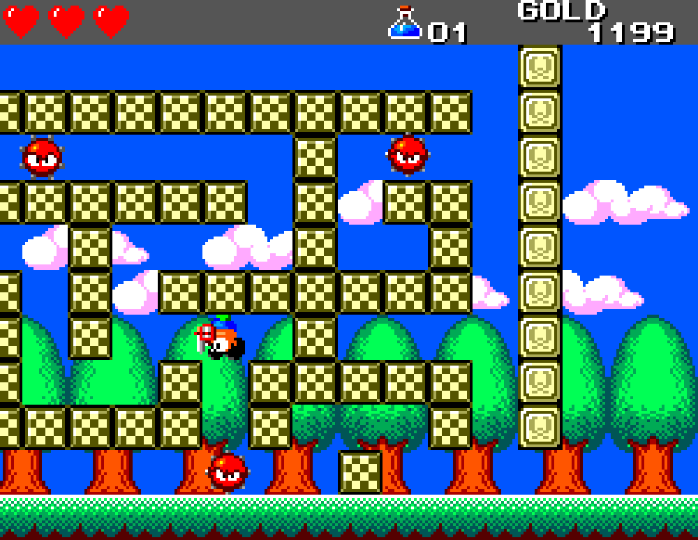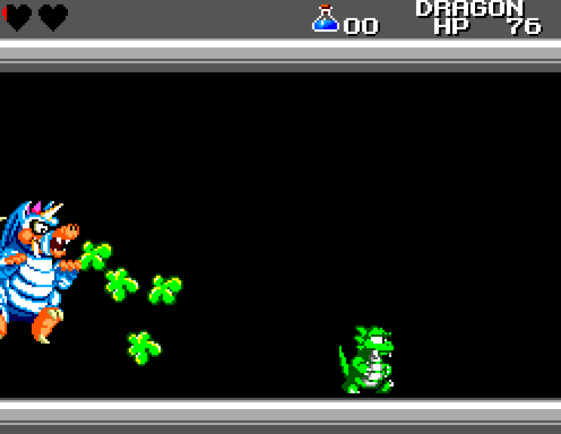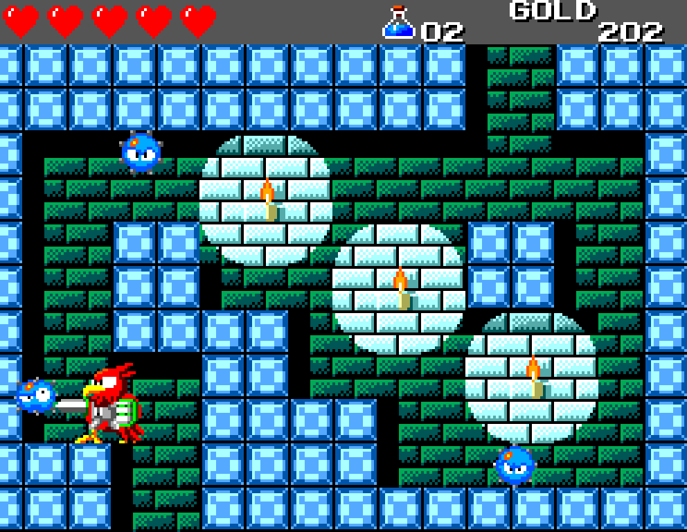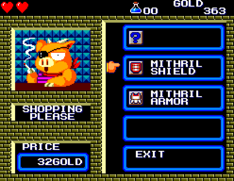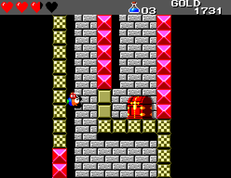 Si on commence le jeu tranquille avec le plein de cœurs et un équipement de folie, dès qu'on sera transformé en dragon/lézard on déchantera vite (et oui, faut bien faire un jeu) puisqu'on commencera tout en bas de l'échelle, donc autant dire avec rien. Il faudra alors parcourir ce monde d'heroïc-fantasy pour trouver des cœurs (afin d'augmenter sa barre de vie), tuer des monstres histoire de récolter le plus possible d'argent (intitulé "gold" dans le jeu) et ainsi faire évoluer son équipement, trouver des passages secrets généralement riches en bonnes surprises (argent, élixir, items) et défaire un à un les boss du jeu, afin d'être à chaque fois transformé.