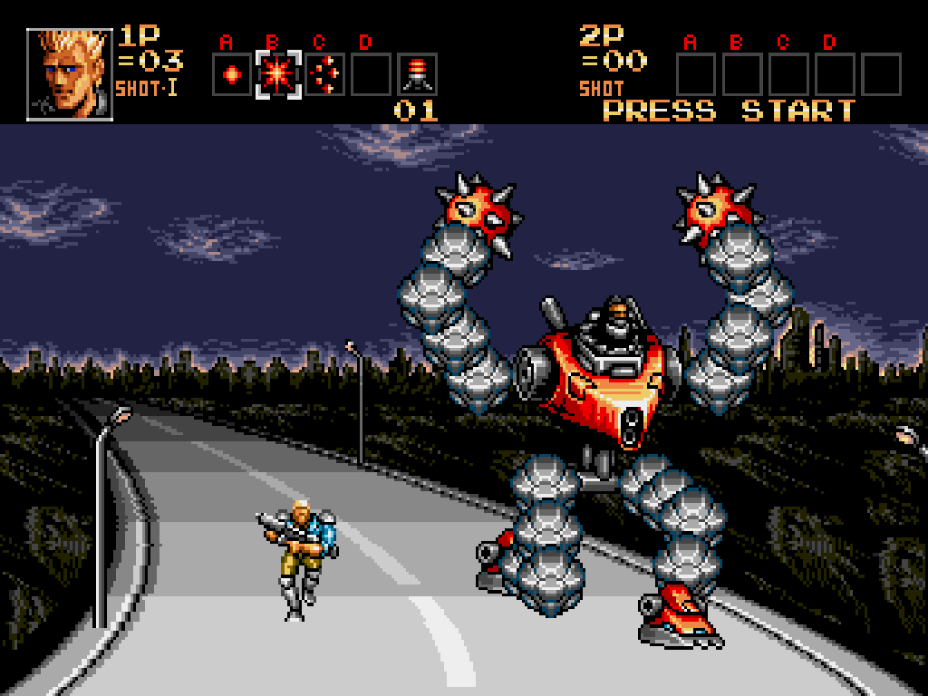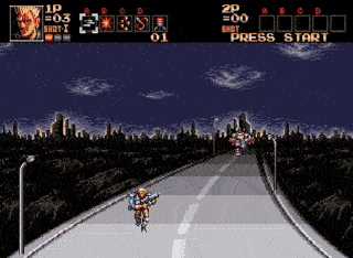 Et puis avec ce Probotector, Konami fait montre d'une maitrise technique éblouissante ! Comme le premier gros boss du jeu, qui prend tout l'écran et n'est pas fixe pour autant ! Ou encore cette impressionnante course-poursuite sur l'autoroute, tout en zoom et à une vitesse de folie, le tout sans Mode7 ! Sincèrement Konami sait faire cracher les tripes de cette bonne vieille Mega Drive, et il nous en met plein la vue tout au long du jeu.
