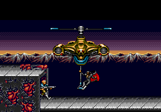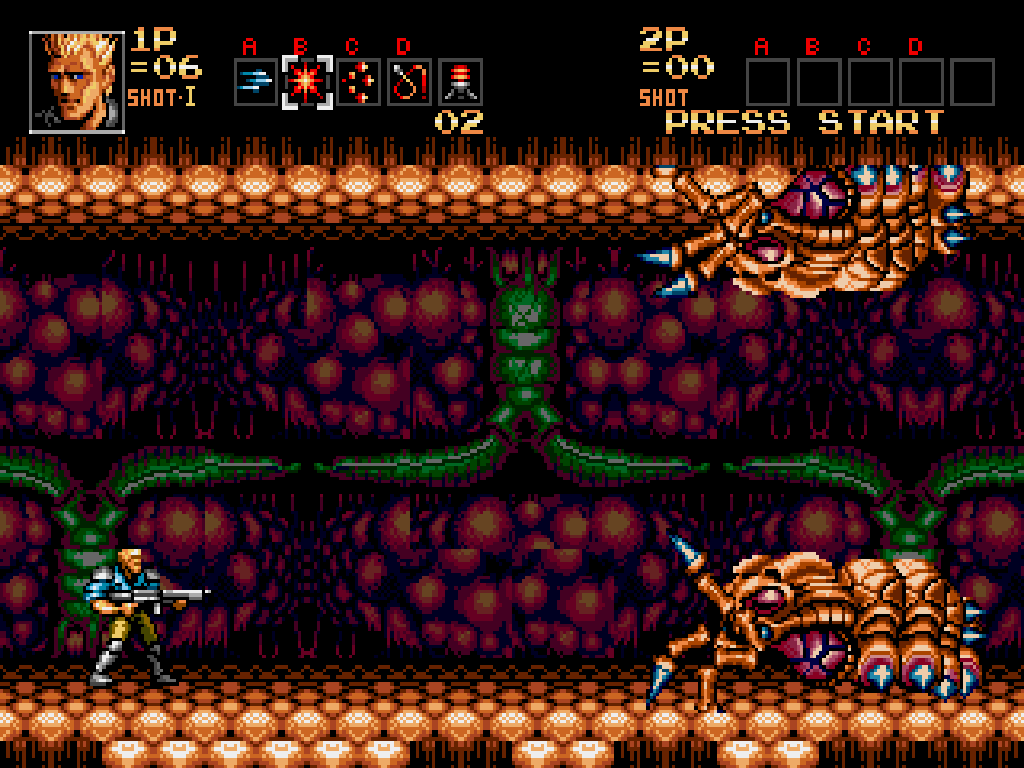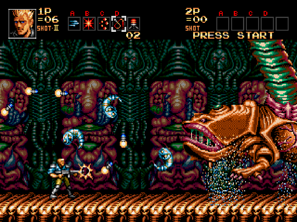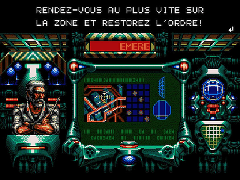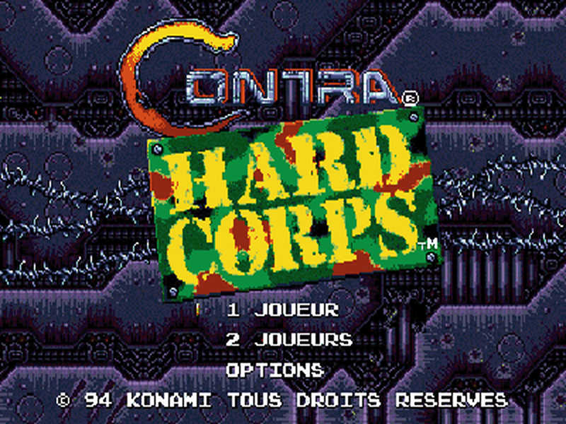 ou Contra : Hard Corps si vous préférez, est l'unique épisode de la série qui verra le jour sur Mega Drive. Sorti entre septembre et novembre 1994 (au même moment, les PlayStation et Saturn voyaient le jour au Japon) nous sommes en présence de la suite du grand Super Probotector de la Super Nintendo, bien que l'épisode ici présent ne laissera sans doute pas la même empreinte dans le temps. Pourquoi ? Et bien parce qu'il arrive relativement tard dans la carrière de la console et surtout, Konami a eu la mauvaise idée de rendre la version européenne encore plus difficile que les autres. Une difficulté rebutante, qui à l'époque a dû en blaser plus d'un(e). Heureusement il existe des moyens de tricher et aujourd'hui, avec l'émulation ou les diverses compilations, il y a moyen de s'en sortir. Reste qu'en 1994, le gamin qui avait kiffé Super Probotector et avait reçu une Mega Drive à Noël dernier (histoire d'avoir les 2 machines à la maison) s'est retrouvé le bec dans l'eau devant ce jeu assez hardcore. Ajoutons également que les décors ont tendance à être ternes et que toute la bande-son est mauvaise (seuls les bruitages sont corrects).