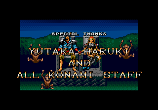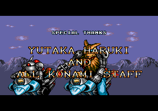 Le jeu est certes un peu terne, mais niveau maitrise technique, Konami assure ! cette époque-là, jouer à jeu Konami c'était la quasi assurance de trouver un titre hyper beau et qui tire parfaitement parti des capacités de son support. Si Contra III accuse des ralentissements, c'est en grande partie parce qu'il a accompagné la console à son lancement car s'il était sorti ne serait-ce qu'1 ou 2 ans après, le studio aurait bien mieux maitrisé son hardware. Il en va de même pour Super Castlevania IV. J'en veux pour preuve les Cybernator, Axelay, Batman Returns, Sparkster et autre Vampire's Kiss sortis après et qui sont unanimement de très beaux titres. Et la Mega Drive n'est pas en reste, car Konami n'a pas commencé à développer dessus à partir de Rocket Knight : il ne faut pas oublier Sunset Riders, Tiny Toons Adventures et Les Tortues Ninjas sortis en 1992, Turtles Tournament Fighters en 1993, et Sparkster en 1994, avec à chaque fois des jeux originaux, contrat d'exclue de Nintendo oblige.