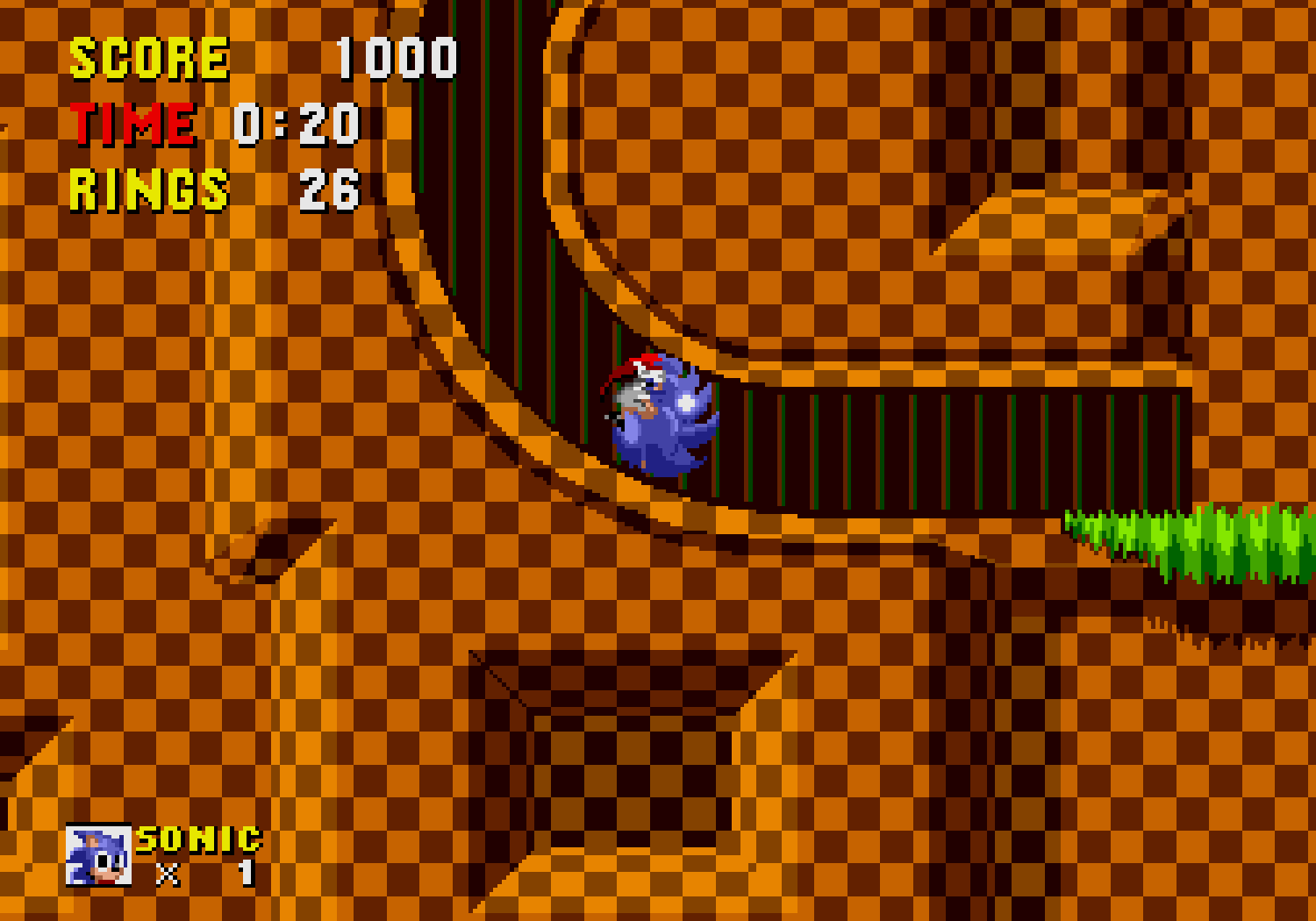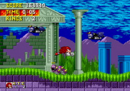 Rapide, super beau, coloré... Sonic est une vitrine technologique de la 16-bits de SEGA le monde le sait, Sonic court plus vite que son ombre et c'est là sa meilleure arme. Lorsqu'il court, si on presse "bas" il réalise la fameuse "spin-attack" (il se roule en boule) dont la plupart des ennemis ne résistent pas. D'ailleurs dans les niveaux aquatiques, il n'est pas rare de se faire toucher parce que justement Sonic saute sans faire son fameux roulé-boulé. Un bug pas bien gênant et j'admets qu'il aurait été sympa de pouvoir sauter sans réaliser la spin-attack, les 3 boutons du pad servant tous à la même action (sauter). Et avec la spin-attack on pourra découvrir des zones secrètes (surtout dans le premier monde), des zones souvent riches en bonus. Pour en revenir à la vitesse du jeu, il faut être clair, lorsque Sonic prend un gros élan et qu'il est roulé en boule, le scrolling est hyper rapide. C'en est même étonnant, impressionnant ! L'autre nouveauté, c'est l'originalité des items qu'on peut trouver en chemin.