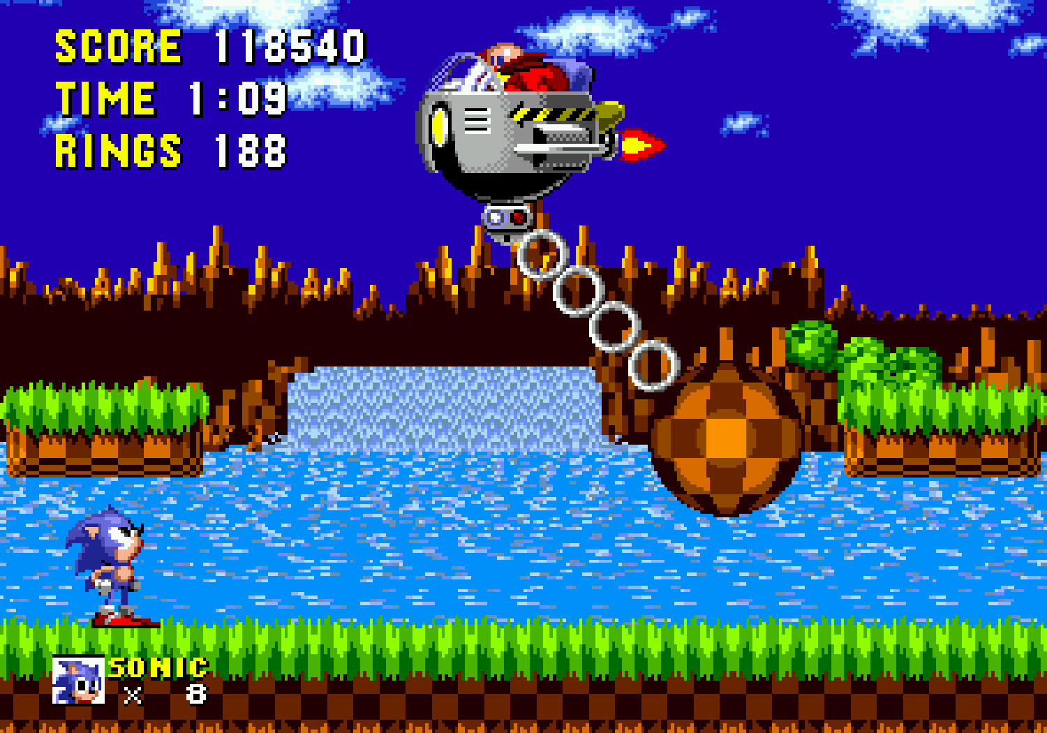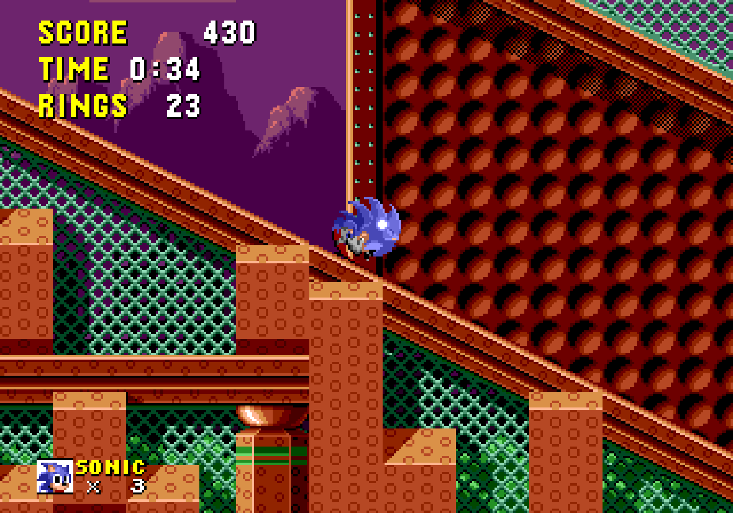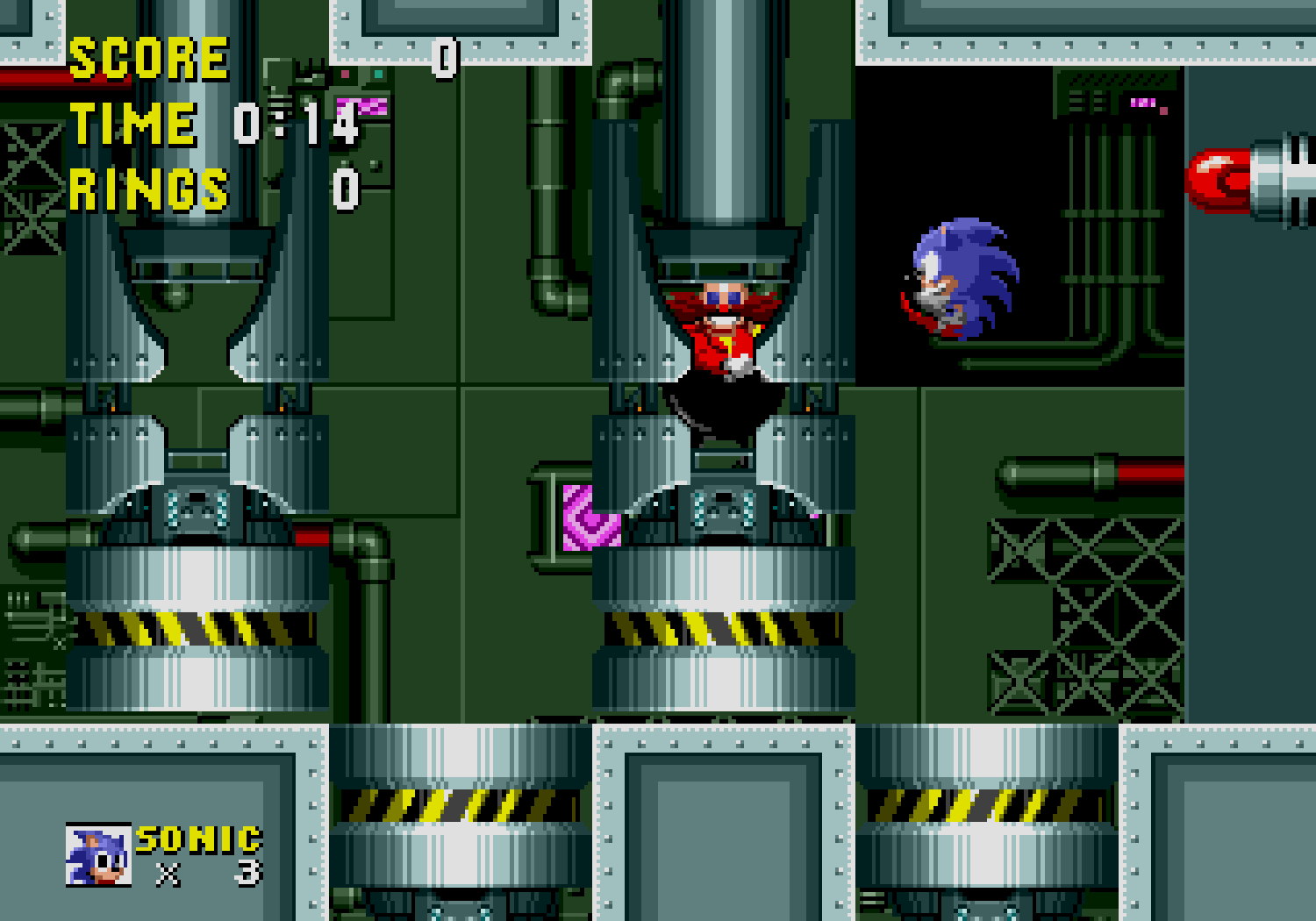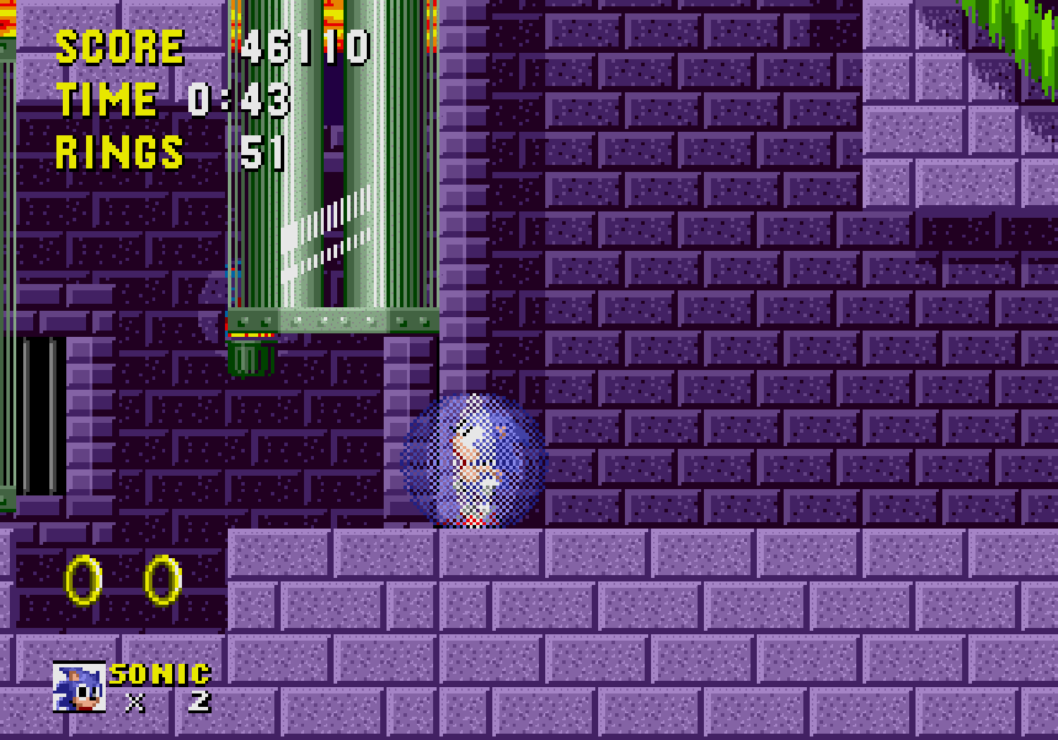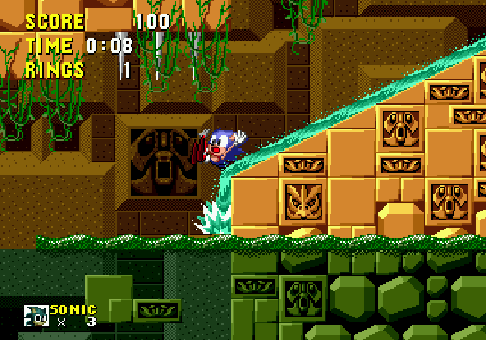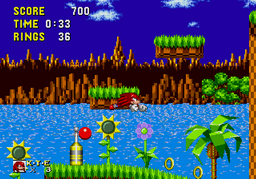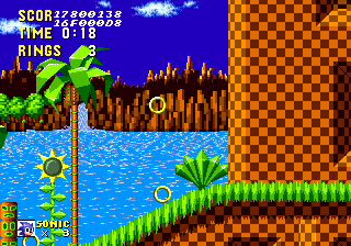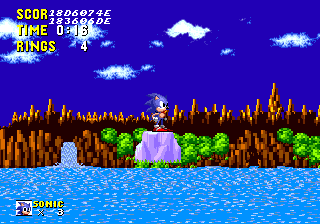 Ces bonus-stages deviennent très vite difficiles et récupérer les émeraudes ne servira qu'à une seule chose : éviter que Robotnik se moque de vous à la fin du jeu. C'est aussi dans ces levels décalés, que vous pourrez obtenir des continues, si vous arrivez à attraper au moins 50 anneaux. Autre changement fondamental par rapport à Mario, Sonic doit respirer lorsqu'il est sous l'eau, ce qui rend notre hérisson plus "humain" qu'un Mario qui se prend pour un amphibien. Loin d'être anodin, en plus d'une certaine lenteur dû à l'environnement, lors des niveaux aquatiques il faudra faire gaffe à bien prendre des bulles d'air sous peine de mourir d'asphyxie. Mais tout le charme de Sonic vient surtout de sa vitesse...