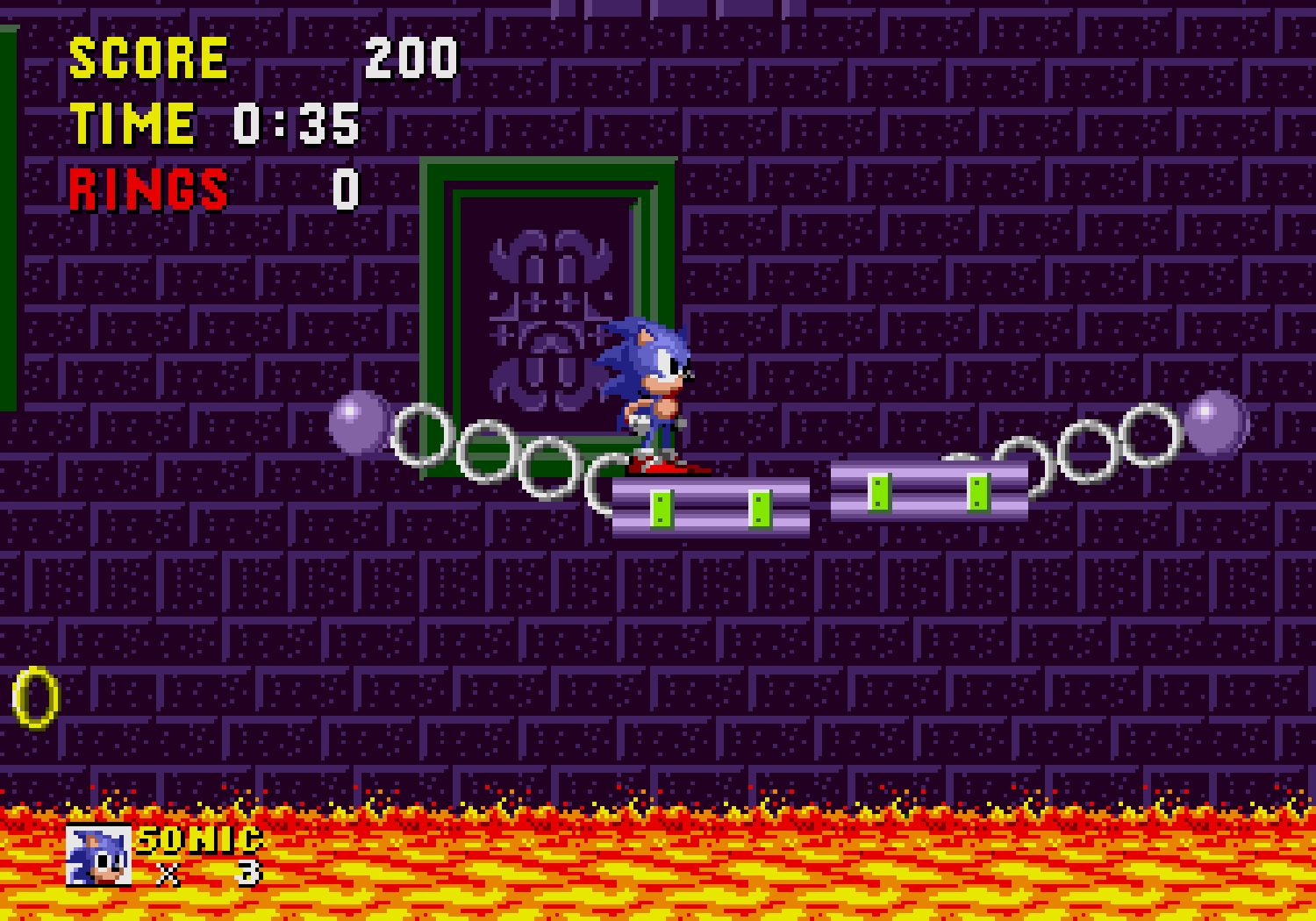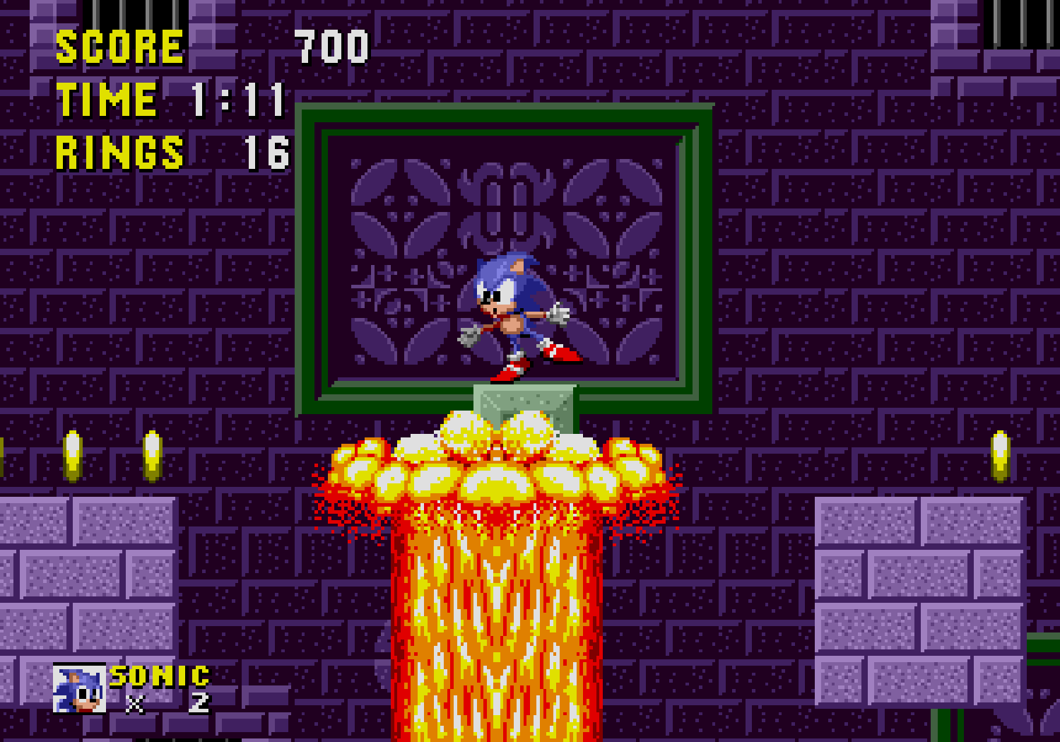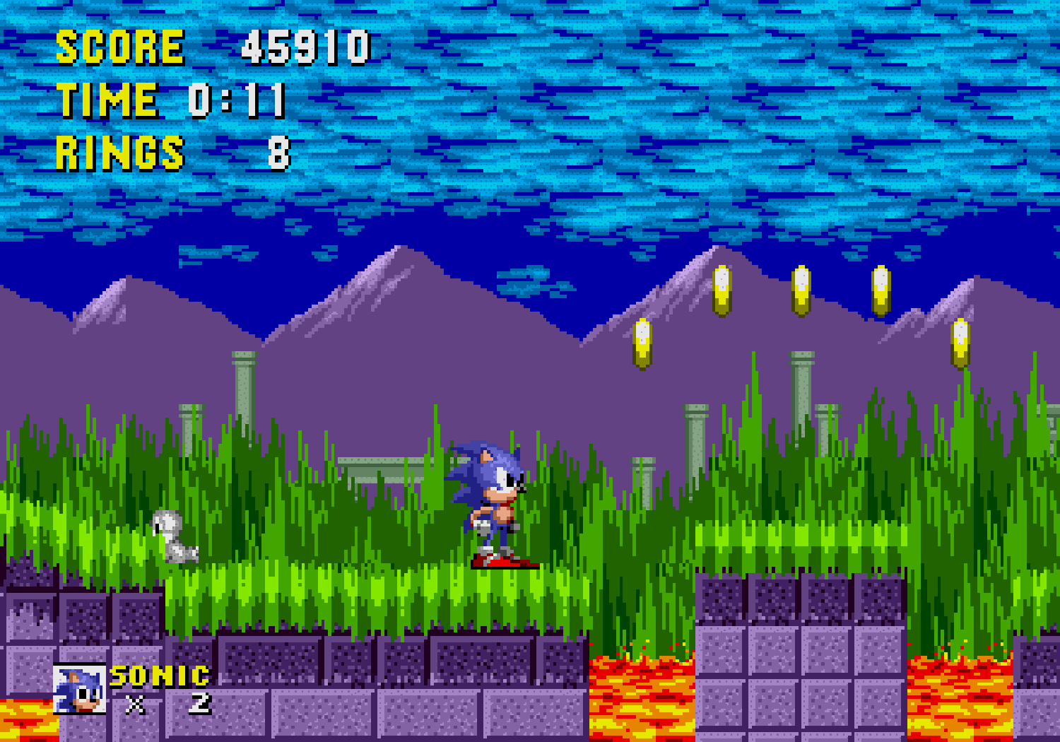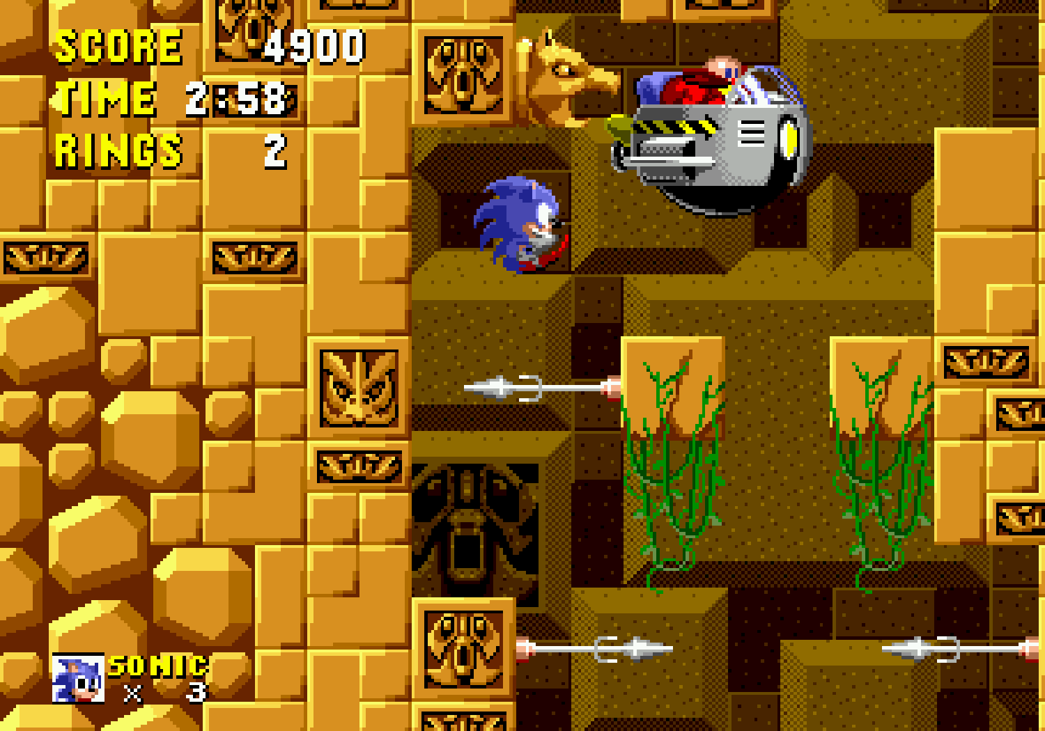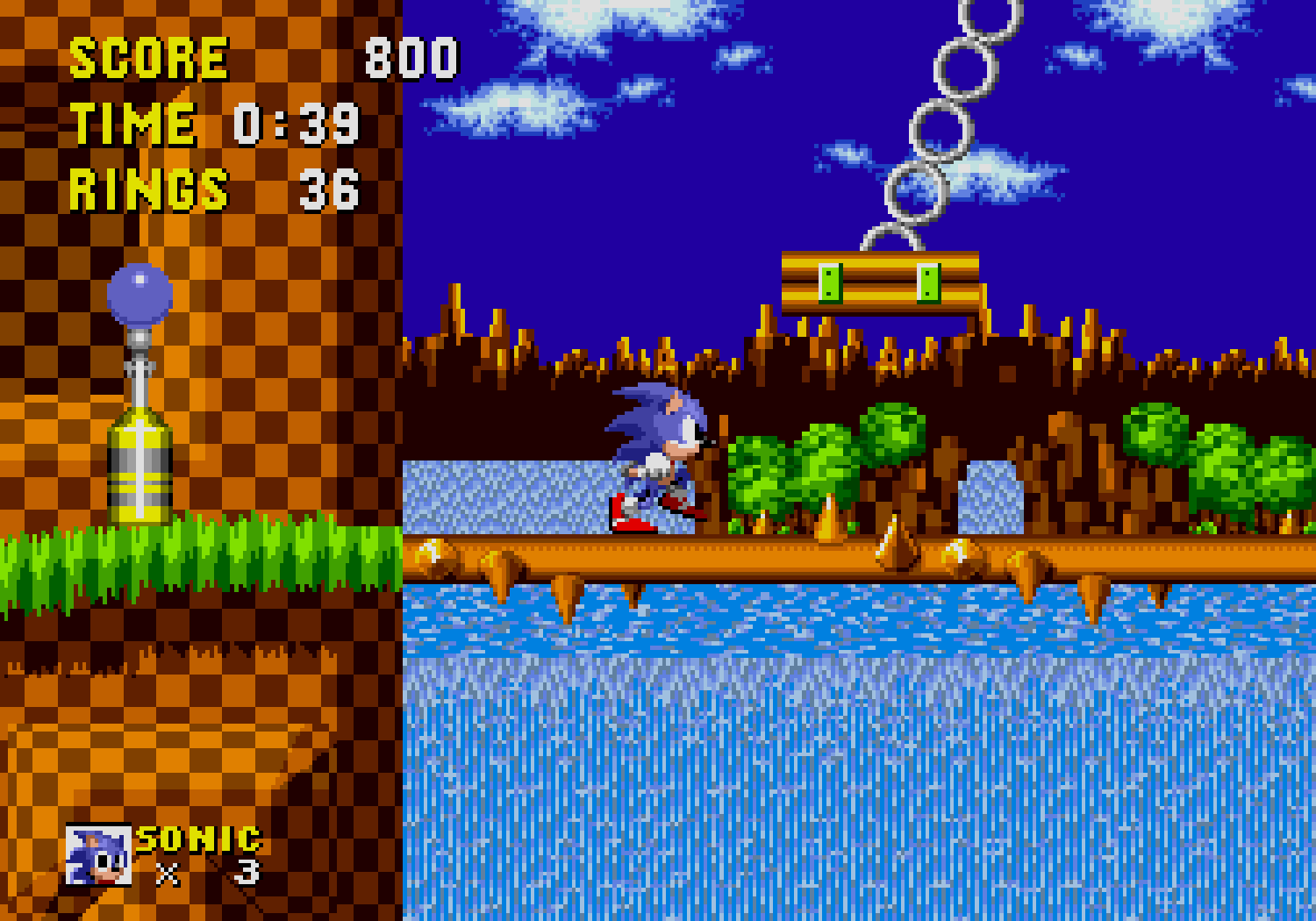 Ces bonus-stages deviennent très vite difficiles et récupérer les émeraudes ne servira qu'à une seule chose : éviter que Robotnik se moque de vous à la fin du jeu. C'est aussi dans ces levels décalés, que vous pourrez obtenir des continues, si vous arrivez à attraper au moins 50 anneaux. Autre changement fondamental par rapport à Mario, Sonic doit respirer lorsqu'il est sous l'eau, ce qui rend notre hérisson plus "humain" qu'un Mario qui se prend pour un amphibien. Loin d'être anodin, en plus d'une certaine lenteur dû à l'environnement, lors des niveaux aquatiques il faudra faire gaffe à bien prendre des bulles d'air sous peine de mourir d'asphyxie. Mais tout le charme de Sonic vient surtout de sa vitesse...