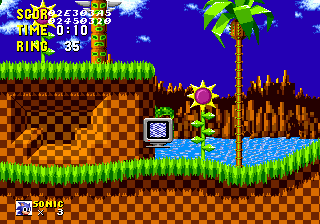 Enfermés sous forme de télés, on pourra récupérer des chaussures pour courir plus vite (la musique aussi s'accélère), un item d'invincibilité provisoire, une bulle de protection, des vies supplémentaires et des télés qui offrent 10 rings d'un coup. En plus il est agréable de profiter de niveaux réellement ouverts. Rares sont les levels dirigistes, généralement on peut prendre le chemin qu'on veut parmi 2 à 4 possibilités. Chaque monde est composé de 3 sous-niveaux, et une fois arrivé à la fin du 3e, on aura un boss à affronter. C'est dans ce premier Sonic qu'il y a le plus d'interactivités (les suites faisant souvent l'impasse sur cette facette du gameplay) : pousser un bloc sur un interrupteur ou pour traverser la lave, faire s'écrouler un bout de colline, se frayer un passage en creusant la montagne, actionner des interrupteurs ou s'accrocher à des barres... sont des joyeusetés presque privilégiées de ce premier épisode.