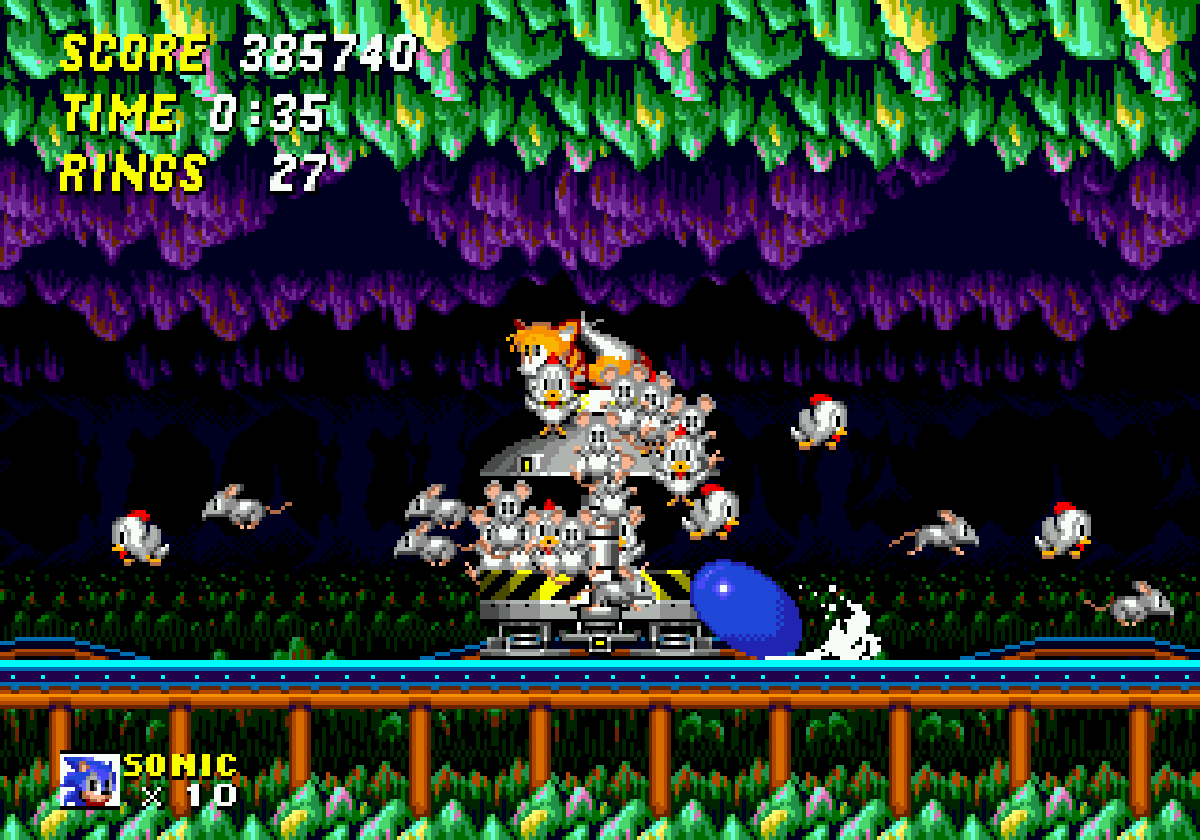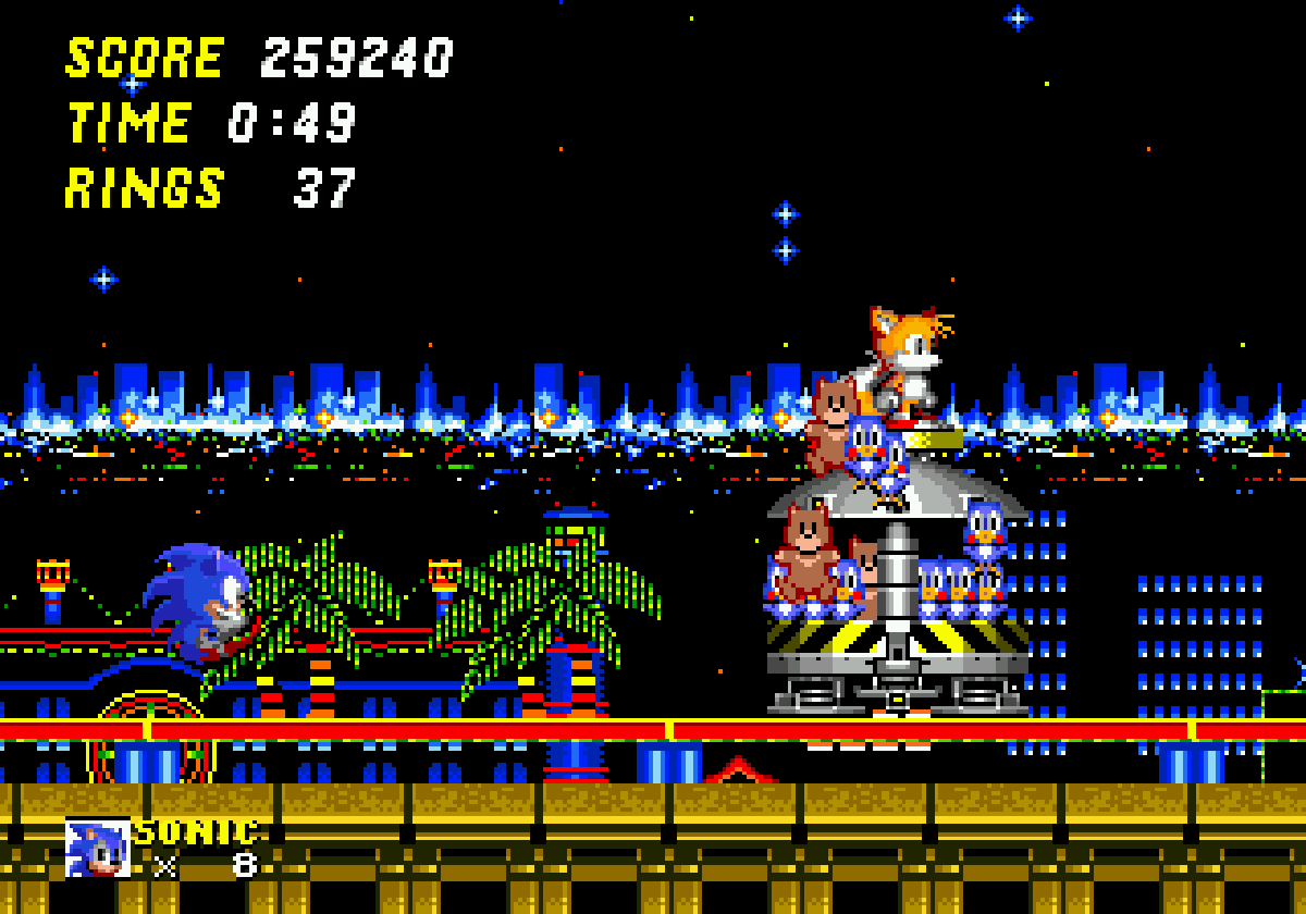 Pour en revenir à notre Sonic 2, le gameplay s'est enrichi, la réalisation est ce qui se fera de mieux sur le support (tant en terme graphismes que de musiques) et cette nouvelle aventure n'est pas avare en originalités, à commencer par la découverte de Tails ou du mode 2 joueurs. Le succès fut tel que Sonic 2 sur Mega Drive resta le jeu SEGA le plus vendu au monde avec pas moins de 6 millions d'exemplaires écoulés. Et les joueurs ne s'y sont pas trompés, ils ont achetés le meilleur Sonic de tous les temps...