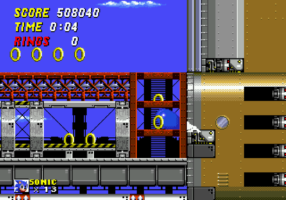 Les interactions sont moins variées que dans le premier Sonic mais plus nombreuses. Par exemple Sonic fait mine de pousser un objet mais il ne déplacera jamais rien dans cette aventure (et c'est vraiment dommage !). Par contre il actionnera beaucoup de switches suspendus, notamment dans la Mystic Cave. En parlant de niveaux, il y a cette fois 20 levels (contre 18 précédemment) et chacun d'entre eux est plus long qu'autrefois. Surtout pour Metropolis qui est le seul monde à proposer 3 niveaux, et qui sont en plus interminables. On a donc 8 environnements distincts plus 3 levels indépendants sur la fin. Au niveau de la durée de vie, elle a un peu augmentée en oscillant entre 2h30 et 3h. C'est beaucoup pour une aventure qu'on doit à nouveau finir d'une traite...