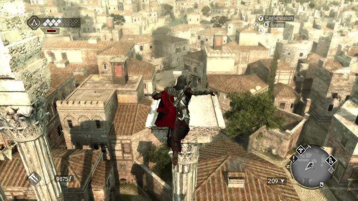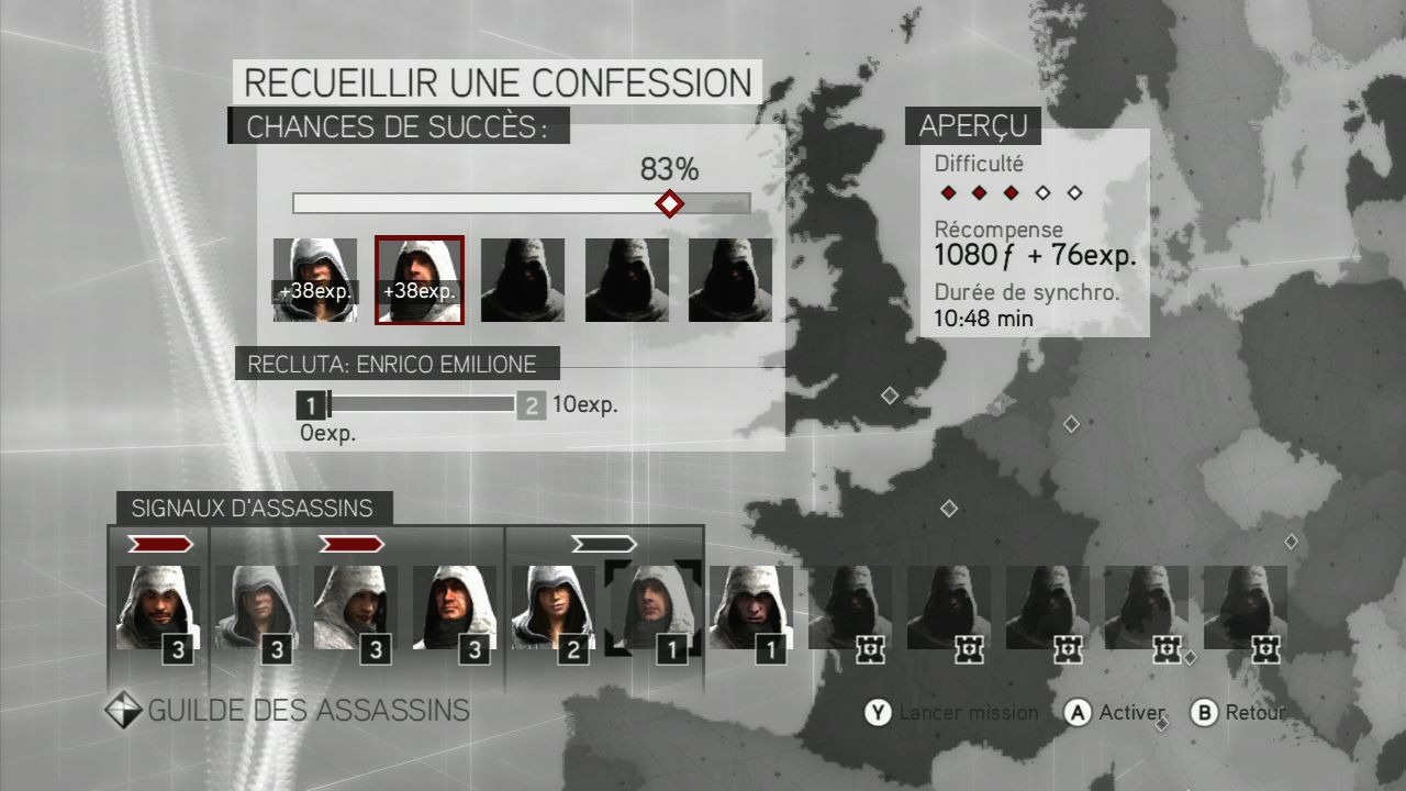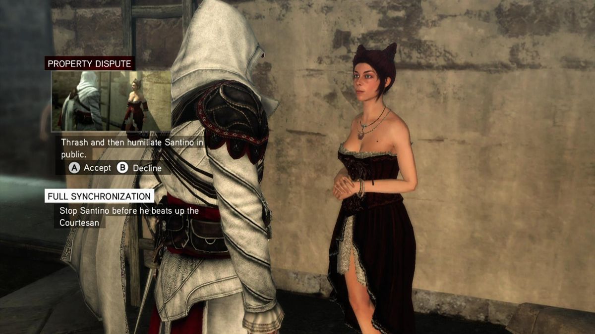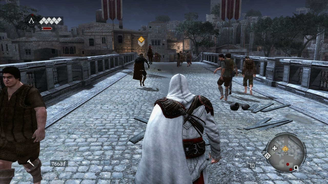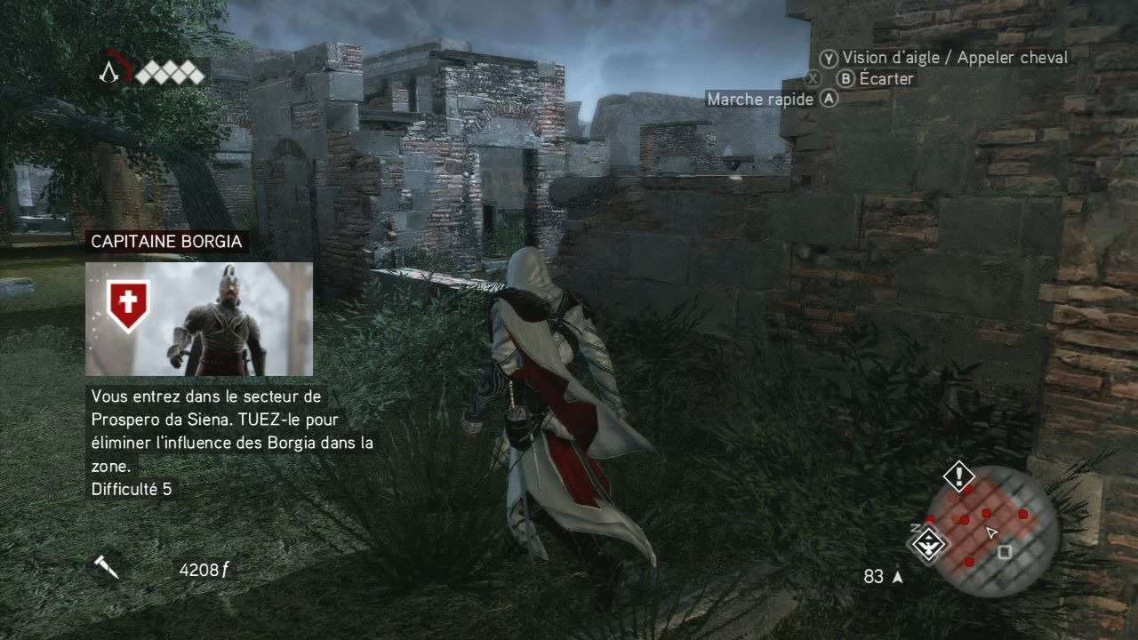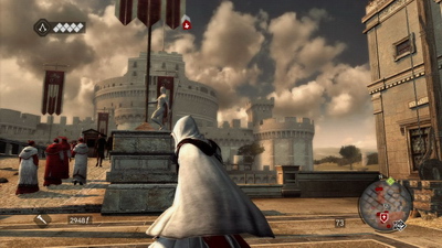 Le jeu est très beau et la bande-son est magnifiquenouveauté, si on peut traduire "brotherhood" par "confrérie", c'est parce qu'Ezio ne libérera pas Rome et l'Europe tout seul. En effet, il formera jusqu'à 10 nouveaux assassins qu'il devra d'abord libérer, puis entrainer pour enfin les envoyer sur des missions bien spécifiques à travers tout le continent, de la Russie jusqu'à la Grande-Bretagne. Ces mêmes assassins, en tant que bons soldats, pourront ensuite nous prêter main-forte si jamais on en a besoin (évidemment, plus leur rang est élevé, plus ils sont forts et moins prompt à se faire tuer au moindre coup reçu). Ce dernier aspect du jeu est assez facultatif, pas vraiment hors de propos non plus mais finalement assez dispensable pour celui/celle qui ne veut pas s'y investir. Mais ce serait une erreur car ces assassins peuvent rendre de grands services.