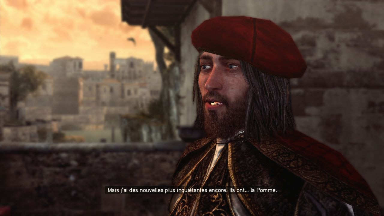 Il faut le reconnaitre, la mise en scène est bien meilleure qu'autrefois, on sent qu'Ubisoft commence à y mettre du sien si le fond de l'histoire s'avère toujours aussi plaisant, dans la forme il en est tout autre. En effet, en elle-même la trame scénaristique est vraiment très légère et si on recompte, entre le début et la fin du jeu, il ne se passe finalement pas grand-chose. Pire, l'épilogue est une véritable nullité qui finit en queue-de-poisson et si un soubresaut nous force à regarder les longs crédits jusqu'au bout (dans l'espoir qu'il va s'y passer quelque chose), en réalité on n'a rien de plus ! Une déception, d'autant que ça fait 3 fois de suite que les scénarios ne volent pas bien haut, alors que justement, l'univers est fort et son fond est particulièrement accrocheur. Je dirai même mieux, dans Brotherhood nous assistons à la pire écriture de la série, faisant souvent office de "remplissage" mais les révélations elles, sont si peu nombreuses qu'on peut déjà passer à l'épisode suivant, il ne nous manquera rien pour comprendre la suite.