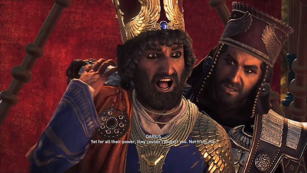 Au niveau de l'histoire, à l'image d'une mission qu'on fera avec Hérodote sur la trace de ses parents, on parle ici d'une invasion Perse. Des Perses qui décidément, ne lâchent pas l'affaire, malgré la grosse fessée infligée par les Spartiates des années auparavant. Cette fois, on devra faire face à une nouvelle menace : l'Ordre des Anciens (et ce, en parallèle du Culte de Kosmos, s'il existe encore). La première partie de cette aventure se déroule uniquement en Macédoine, cette région tout au nord de la carte et où autrefois il ne se passait pas grand-chose. On y rencontrera Darius (bien que ce ne soit pas le fils de Xerxès mais Artabanus de son vrai nom... allez savoir pourquoi il prend ce patronyme-là) et son enfant. Alors il faut le savoir, si vous jouez avec Kassandra, Darius aura un fils du nom de Natakas, alors que si vous jouez Alexios, Darius aura une fille du nom de Niima. Ce détail a son importance pour la suite de l'aventure.