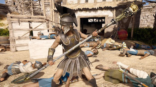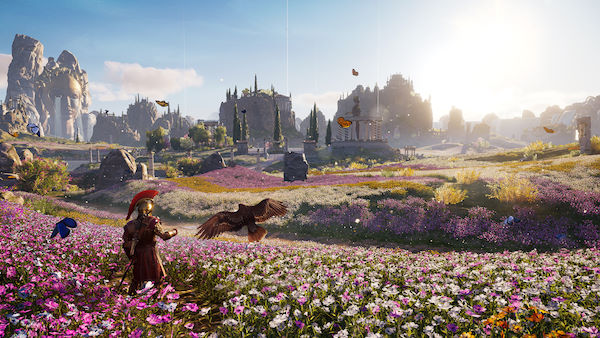 L'Elysée est un lieu qui offre bien des nouveautés, ainsi que plus de verticalité et des fortesses vraiment originales on retrouve des tombeaux, des coffres à piller, des cours d'eau avec des bateaux (mais sans requins cette fois :), des trésors à dévaliser, des camps à vider, des ostracons à énigme, des ruines, des forteresses... du neuf et du moins neuf en somme. Il n'empêche que l'ensemble fonctionne à merveille, déjà parce que le level design a été largement rafraichi (avec notamment plus de verticalité, ce qui nous incite à utiliser les ailes d'Hermès, qui ne sont rien d'autre que des téléporteurs, des ascenseurs améliorés), on découvre aussi de nouvelles idées de gameplay (qui rendent certains puzzles plus intéressants, notamment dans le grand tombeau local) ainsi qu'une architecture des bâtiments qui n'a rien à voir avec ce qu'on connait déjà. Une vraie diversité qui accompagne le plaisir de la découverte de zones plus éclatées, plus larges aussi.