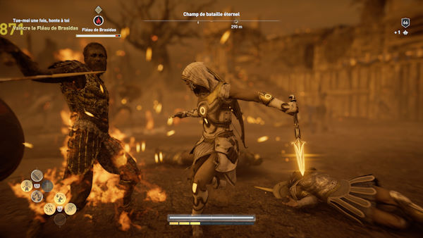 Par contre bonne nouvelle, si vous trouvez que les colosses de bronze ou les polémarques locaux sont un peu cheatés, une mission nous permet de récupérer l'armure du dikaste et celle-ci est un vrai bonus ! En effet, une fois les éléments réunis et portés dans leur intégralité, cette dernière vous offre de nouveaux pouvoirs, aussi bien offensifs que défensifs et ce, sans dépenser le moindre point de compétence. Et pour ne rien gâcher, je la trouve en plus très classe (finalement assez proche de celle d'Achille).