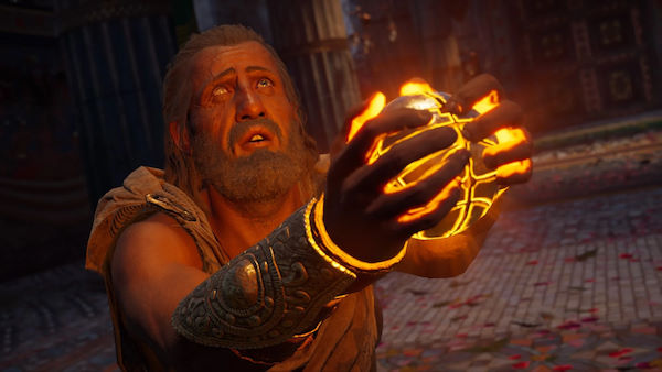 Sorti en octobre 2018, Assassin's Creed Odyssey aura eu une très longue carrière, notamment grâce à la rétro-compatibilité des consoles de 9e Génération. Mieux encore, plutôt que de proposer un remaster en édition complète, en août 2021 Ubisoft a choisi de nous livrer des patches gratuits afin que le jeu fonctionne au mieux sur les consoles les plus récentes. Ainsi sur PS5 et Xbox Series X, nous obtenons du 4K en 60 fps, offrant ainsi la meilleure expérience console possible. Et bien entendu, l'aventure Odyssey se poursuit grâce à l'ajout de contenus annexes, parfois payants, parfois gratuits (comme quoi, tout est possible). A l'achat du Season Pass, on déverrouille un pack de 2 missions, plus connus sous le nom de "Les Secrets de la Grèce". La première, "Le Philosophe qui Rit", nous propose de récupérer 3 théories scientifiques qui, une fois associées, révéleraient un grand mystère. Une mission au final assez banale, et qui vous demandera de parcourir toute la Grèce. C'est aussi le cas de la seconde mission, "Le Roi Aveugle", qui prend ironiquement le nom de "Prince of Persia". Dans celle-ci on entend déjà parler de Xerxès (celui que Léonidas et ses 300 affrontent aux Thermopyles), ainsi que de Darius et Artaxerxès (ses enfants).