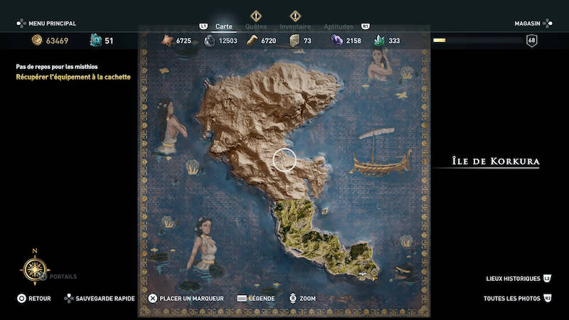 Sous couvert de vacances, ce DLC gratuit nous propose un tout nouveau terrain de jeu et une histoire originale naturellement avec le fameux contenu gratuit, ajouté par Ubisoft 3 ans après la sortie du jeu de base. La fameuse mission "La grande évasion" s'active via une icône violette sur l'île de Kephallonia et promets à notre héros des vacances bien méritées. Attention tout de même à faire ce contenu au moins après l'aventure principale car elle spoile d'elle-même certains événements. En bref, Alexios / Kassandra va prendre des vacances sur l'île de Korkura (aussi connue sous le nom de Corfou ou Corcyre). Comme à son habitude, cette île existe vraiment, mais elle est bien loin du terrain parcouru dans le jeu. Cette île grecque se situe sur la façade ouest du pays, à proximité de sa frontière avec l'Albanie. Elle trempe sur cette partie de la Méditerranée (ou plutôt son bras appelé la mer ionienne) piégée entre l'Italie et l'Est de l'Europe.