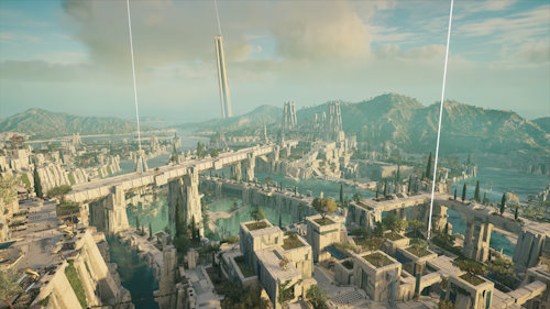Autant vous le dire de suite, avec ce conséquent DLC, c'est clairement l'ascenseur émotionnel ! On commence par l'Elysée, qui est un paradis, pour finir en enfer qui est... ce qu'il est. La chute est rude, mais en arrivant en Atlantide, l'émerveillement reprend ! Oui, l'Atlantide est somptueuse, baignée de lumière, entourée d'une eau où on voudrait se baigner, et l'architecture est d'une beauté à peine descriptible ! Ubisoft est arrivé à retranscrire à l'écran ce que la mythologie en dit, à savoir une île découpée en 3 cercles concentriques, chacun d'eux étant séparés en régions par de larges cours d'eau. Autant dire que les premières heures de pérégrination dans ce lieu, sont un émerveillement constant.