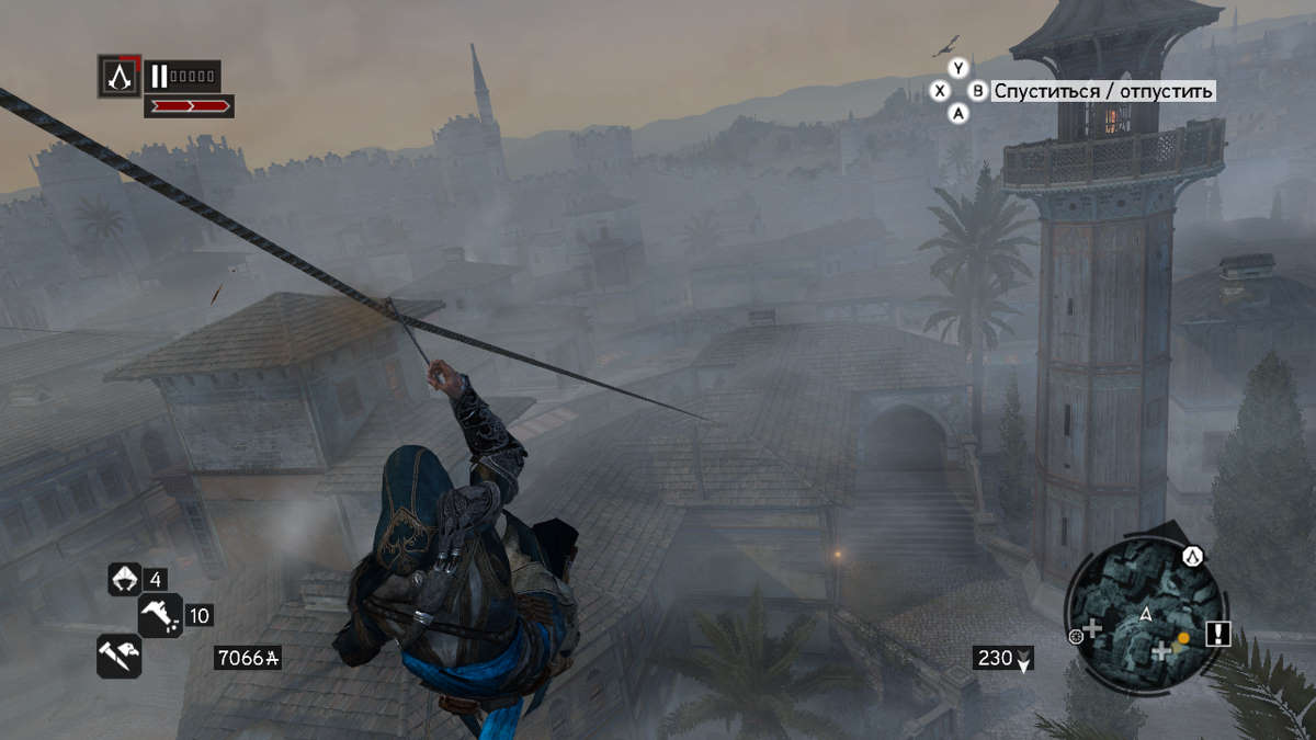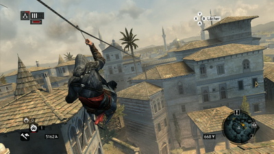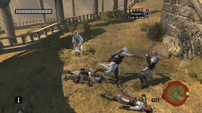 Une fois qu'on prend le jeu en mains, il est naturel de retrouver tout ce qui fait le charme de la série. Revelations continue même à régler les menus problèmes et à peaufiner un gameplay qui devient de plus en plus précis et agréable. Si Ezio fait encore quelques erreurs lors de son parkour, il faut reconnaitre qu'elles commencent à se faire rares. De même les combats sont de plus en plus permissifs. Si bien sûr on peut encore la jouer "tactique", jouer bourrin est désormais tout aussi payant. Ainsi les affrontements gagnent en dynamisme et on assiste même à un joli ralenti (juste parce que c'est classe !), lorsqu'on étale le dernier opposant. On retrouve évidemment quelques missions un peu absurdes (comme au début du jeu où Ezio est trainé comme un sac de patates à l'arrière d'une diligence) mais globalement, le titre fait tout pour éviter les prises de tête et ça, ce n'est pas un mal. Malheureusement, comme il n'y a toujours pas de niveaux de difficulté, il est clair que les férus de challenge vont restés sur leur faim.