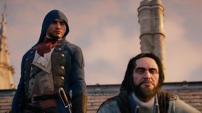 Ici le point central c'est l'histoire d'amour entre Arno et Elise, un Roméo et Juliette version Ubisoft Montréal. En effet Arno va découvrir le monde des assassins et des templiers suite à une tragédie familiale. Son destin et sa vie vont alors aller inexorablement vers la vengeance, la noirceur et la violence. Traditionnel me direz vous... oui sauf que cette trajectoire va croiser celle d'Elise et qu'à partir de ce moment-là, les certitudes de nos héros vont voler en éclats.
