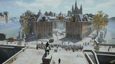 Les effets de lumières et de fumés démontrent vraiment l'avantage des nouvelles consoles, et on sent que le AnvilNext 2.0 apporte un certain regain de performances (quand il ne bug pas). Maintenant à vouloir impressionner quantitativement (avec des foules agglutinées lors de certains événements ou devant certaines bâtisses) le jeu montre un clipping important et des nappes de brouillards épaisses, qui gâchent un peu le plaisir ressenti lorsque l'on grimpe en haut d'un monument et que l'on constate l'impressionnante profondeur de champ. Maintenant sachez que c'est un titre exclusivement lié aux nouvelles générations, mais on peut imaginer que la technologie utilisée, commence à peine à donner sa pleine puissance et il y a fort à parier que l'avenir de ce titre palliera à ses quelques faiblesses techniques, et que les épisodes suivants seront encore plus bluffants (et plus bugués ?).