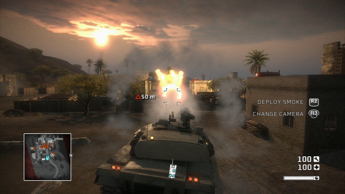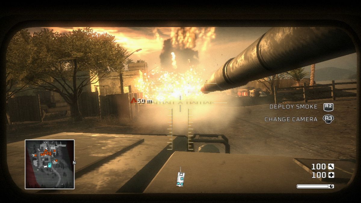 Loin d'être vides, c'est juste qu'un peu de variété n'aurait pas fait de mal. Le Frostbite Engine pourrait très bien être confondu avec un moteur qu'on voit un peu partout en ce moment : l'Unreal Engine 3. En effet, le rendu est assez similaire et je dirais même tout aussi performant, avec les mêmes petits défauts comme un aliasing assez présent et un étrange effet de grain, visant à lisser les textures. Reste que le résultat final est super beau, même si on a encore un peu trop de mouvements de tête. Du point de vue de l'image, l'autre grosse attraction c'est la destruction quasi massive du décor. Je dis bien "quasi" car certains objets restent indestructibles.