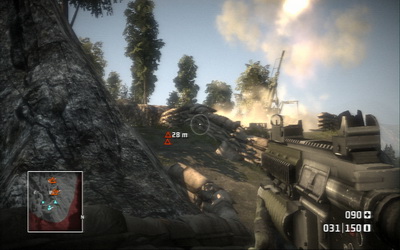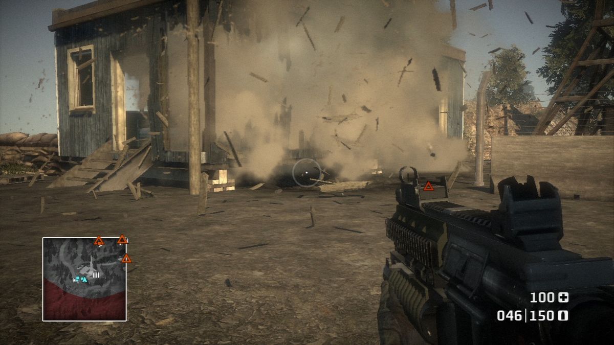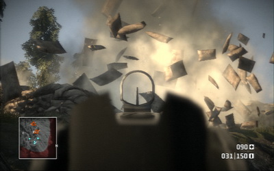 Dommage que certaines armes manquent à l'appel comme le MP90 ou le Famas, mais entre les snipers, les fusils d'assaut, les lance-roquettes et autres, y'a de quoi s'amuser (encore une fois il est dommage de ne pas pouvoir prendre au moins 2 armes, car un sniper a toujours besoin d'une seconde pétoire). Quelque soit l'arme utilisée, notre personnage aura le bon goût de toujours ramasser les chargeurs compatibles et au cas, il existe des caisses de réapprovisionnement, bien utiles je dois dire. Enfin, les 2 gros plus de ce Battlefield, c'est que le gameplay n'est pas varié mais étonnamment ça ne dérange pas, vu que c'est extrêmement fun. Un fun notamment dû à une destruction quasi massive du décor. Il n'y a qu'à prendre un mortier, une tourelle ou même tank pour littéralement remodeler le décor, défoncer la nature comme les bâtisses ! C'est un chapitre qu'on aborde plus en profondeur dès le paragraphe suivant...