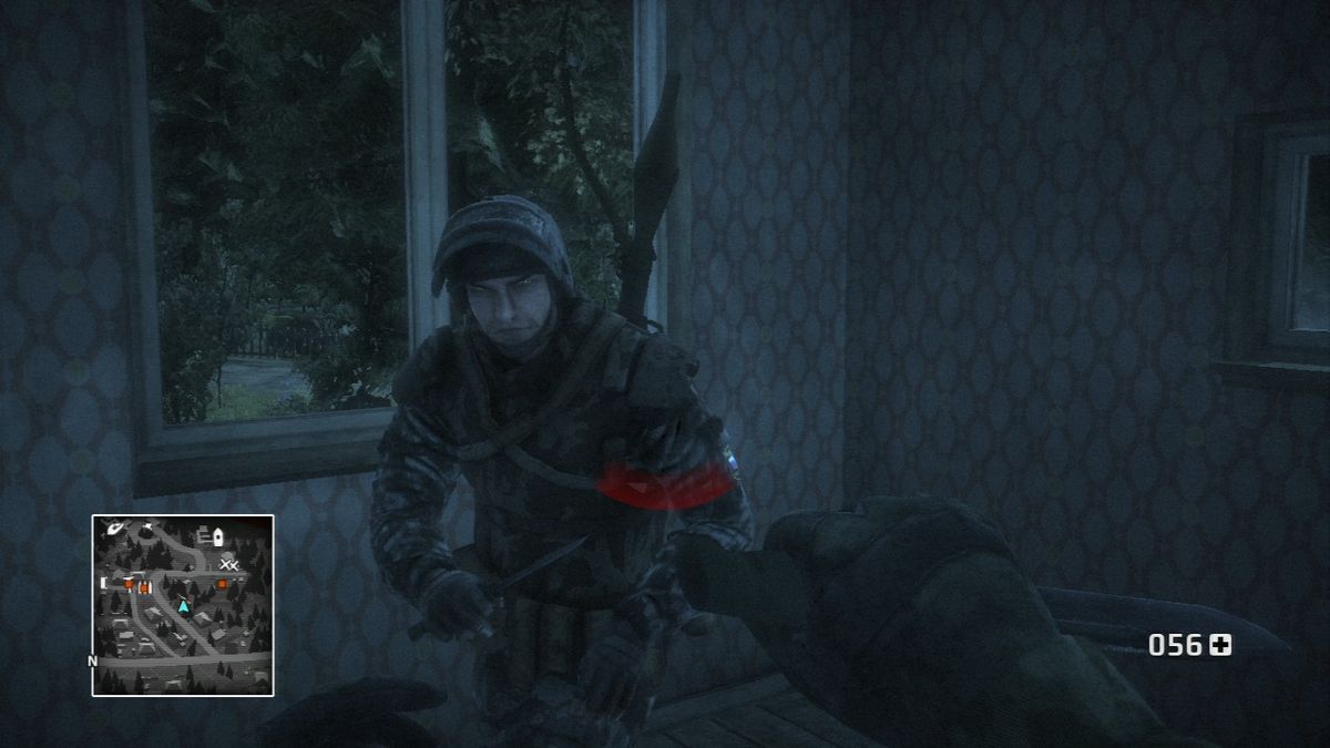 Pour en revenir aux gadgets, notre homme ne peut en porter qu'un seul. Bazooka et lance-roquettes se taillent la place du lion avec un boitier de ciblage pour un tir aérien (un gadget plus précieux que les autres). C'est idiot, je ne vois pas comment un boitier à peine plus gros qu'une Game Boy, peut empêcher de pendre un bazooka en plus. De même, Preston ne peut porter qu'une seule arme. Si on est en rade de balles, il ne reste plus que le couteau. Là encore je dis "faute" : qu'est-ce qui empêche le bonhomme d'avoir un simple flingue en arme secondaire (surtout s'il ne porte pas d'arme lourde) ? Rien, bien évidemment, à croire que DICE a absolument cherché à nous serrer la bride...