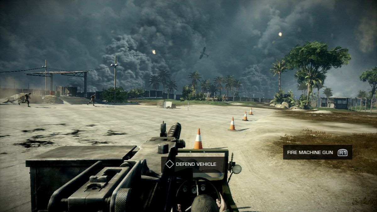 Malheureusement, en plus des problèmes de synchro, il n'est pas rare qu'on entende les communications radio comme si les persos étaient à côté, alors qu'ils sont à l'autre bout de la carte (comprenez sans l'effet distordant adéquat). C'est un peu laid, surtout pour un jeu de 2010 (il m'est arrivé quelques fois de me retourner pour voir si le gars n'était à côté de moi, tant on le croirait). DICE a tout de même conservé cette superbe option qui nous laisse le choix entre VF et VO, pour les dialogues alliés comme ennemis (qui de leur côté sont japonais, espagnols...). Autre point sensible, si autrefois la musique se la jouait cool et détendue avec notamment des airs jazzy (surtout au début du jeu, la fin étant plus sérieuse), désormais il faut oublier tout ça. Le ton est plus grave et les musiques sont devenues, elles aussi, plus dramatiques. A grand coup d'orchestrations et de compositions cinématographiques, l'ambiance a radicalement changée.