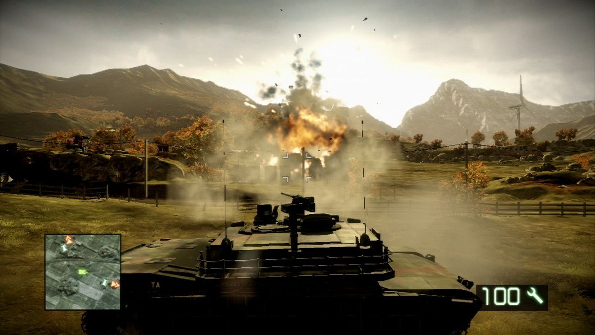 L'arsenal est toujours aussi étoffé et les caisses d'armes rendent bien service parlant de véhicules, qui sont bien entendu à l'honneur dans ce nouveau Battlefield (puisque la licence s'est avant tout forgée une réputation avec ça), désormais on peut conduire et tirer en même temps. Là aussi on pourrait critiquer un certain non-sens du réalisme mais ça permet de rouler et de shooter en même temps, plutôt que de switcher entre les positions au sein du véhicule, ce qui hachait un peu les ballades (on l'a déjà vu dans Crysis et c'est toujours aussi efficace). Du coup la vue est uniquement à la première personne (plus de vue extérieure), et grand sérieux oblige, on n'a plus du tout de station de radio, même locale. C'est par contre un vrai bon point, Preston transporte désormais 2 armes. Même si parfois on nous impose les pétoires, il est quand même agréable de pouvoir en changer selon les besoins et les affinités. Et justement, cerise sur le gâteau, en plus de pouvoir ramasser toutes les pétoires ennemies laissées à terre (des "guns" qui sont en plus localisées sur le radar), notre personnage a accès à des caisses d'armes.