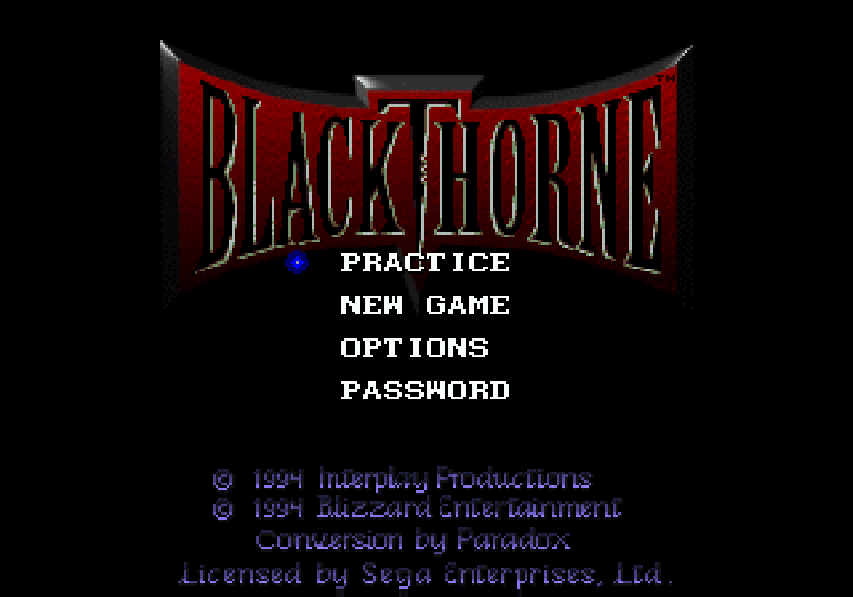 D'abord connu sous le nom de Silicon & Synapse, Blizzard changera de nom et leur 2e jeu sera celui-ci (SNES) tout le monde connait Blizzard pour ses licences cultes telles que Diablo, Warcraft et Starcraft, il faut savoir qu'à l'origine ce développeur américain est né en 1991 sous le nom de Silicon & Synapse et fut connu pour des jeux très typiques du studio, que sont les excellents Lost Vikings et Rock n' Roll Racing. Ce n'est qu'en 1994 que Blizzard Entertainment prendra son nom définitif et leur premier jeu sous ce patronyme fut The Death and Return of Superman, et le second n'est autre que notre jeu du jour, à savoir Blackhawk, aussi connu sous le nom de BlackThorne aux Etats-Unis (je n'ai jamais compris pourquoi les studios prenaient plaisir à changer les titres des jeux pour leur arrivée sur notre sol).