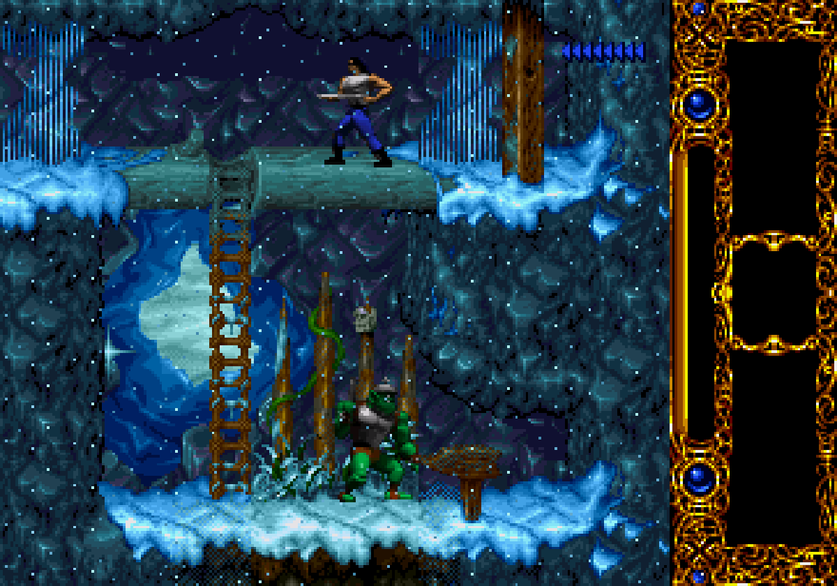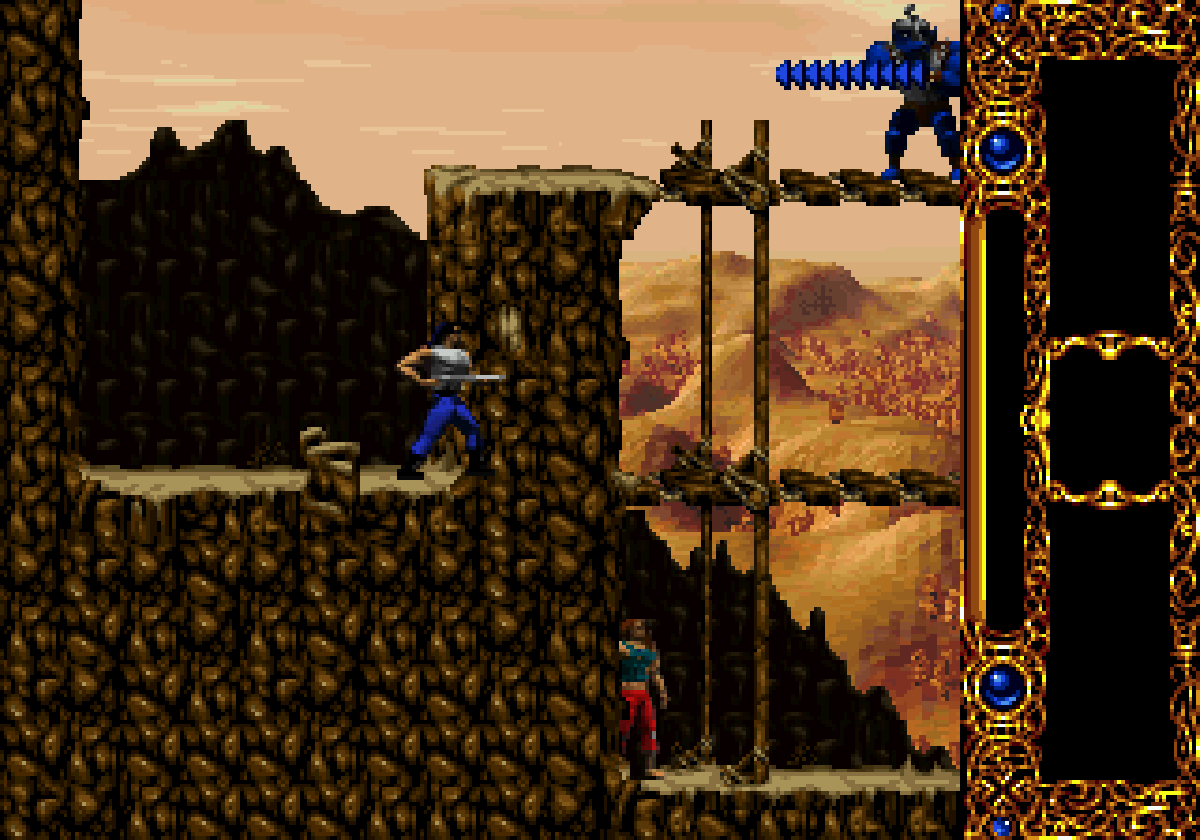 (aussi connu sous le nom de BlackThorne aux USA) est un jeu d'action / plate-formes dans la droite lignée de Flashback, ce grand hit au succès planétaire. Proposant beaucoup d'exploration (d'ailleurs le level design est particulièrement bien travaillé), un peu de réflexion et un bon aspect tactique, Blackhawk c'est aussi des combats originaux où la jouer bourrin ne vous fera pas avancer plus vite. Subtil et nécessitant un brin de jugeote, ce jeu de Blizzard marche sur les traces des grands titres d'aventure tels qu'Another World, Flashback et Prince of Persia.