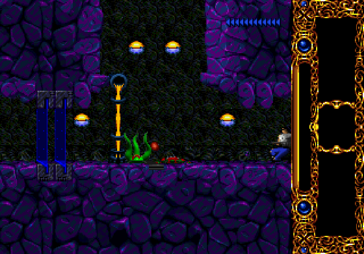 Les animations sont agréablement fluides, et font beaucoup penser à Flashback (32X) tous les cas, la version Super Nintendo nous fait l'honneur de proposer des textes en français quand les versions 32X et GBA se contentent de textes en anglais, comme nous venons de le voir. Il n'empêche que les textes sont parfaitement écrits dans notre langue, il n'y a rien à reprocher à ce niveau-là. Côté gameplay, Blackhawk (puisque c'est comme ça qu'il s'appelle en Europe) est composé de séquences de plate-formes similaires aux jeux d'aventure/action tels que Prince of Persia (la version originale de 1989, développée par Jordan Mechner), Another World, Flashback et dans un futur proche, les Oddworld. Kyle peut se déplacer, courir ou escalader les plate-formes, ramasser des clés et des objets avec un seul but final : arriver jusqu'à la salle du trône, et faire la peau à Sarlac. Il n'y a donc aucune véritable mission secondaire (comme sauver ses confrères, qui sont parfois enchainés), les seuls tenants et aboutissants de l'aventure étant de franchir les niveaux, ce qui nécessite toujours d'obtenir au minimum des clés et de désactiver des champs de force.