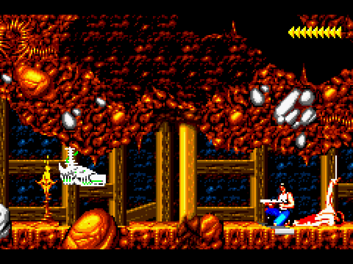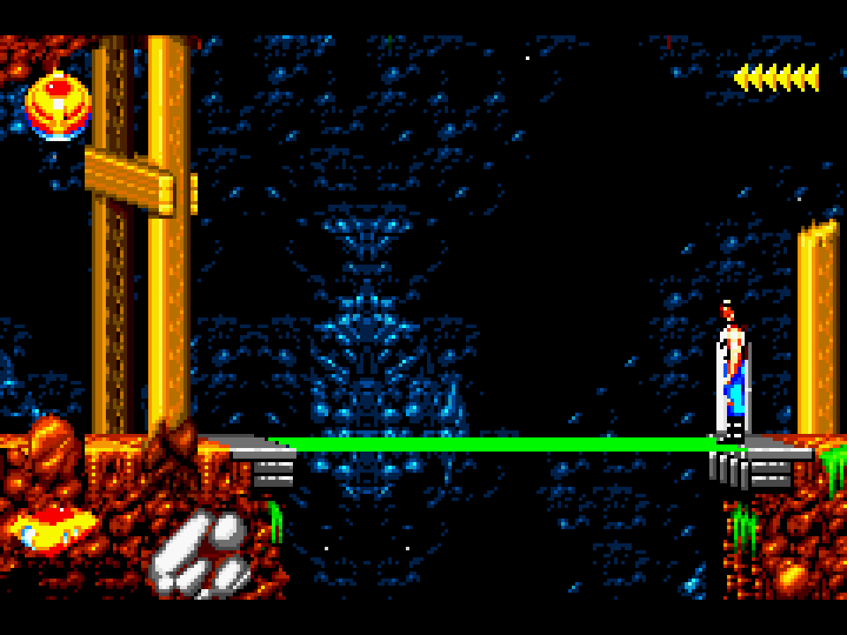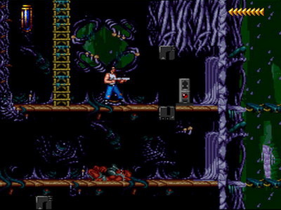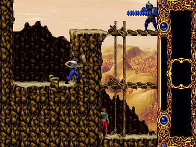Il faut attendre le bon moment pour sortir de sa planque et tenter de shooter l'ennemi. Après c'est vrai, on est loin du côté instantané d'un Alien 3 ou d'un Contra, mais ça rend également le jeu nettement plus subtil. Nous avons également la possibilité de tirer en arrière et certes le mouvement ne manque pas de classe et peut s'avérer utile tant le héros est lent à se retourner, mais je doute que ça serve beaucoup (à moins d'être pris en sandwich par 2 ennemis simultanément). Quand aux phases de plate-formes, elles sont littéralement pompées de Flashback ! Je dirai même que, en tant que grand fan du jeu de Delphine Software, Blizzard s'en est plus que grandement inspiré !