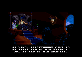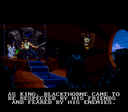Notez que seule la version Super Nintendo dispose de sous-titres en français car sur 32X le jeu n'a vu le jour qu'aux Etats-Unis (une incompréhension car le 32X marchait pas trop mal chez nous et beaucoup de jeux sont sortis en Europe) et sur GBA, malgré une boite et une notice en français, sachez que les sous-titres eux, sont uniquement en anglais. L'histoire de Blackhawk / BlackThorne se déroule sur la planète Tuul, qui était dirigée par un roi-chaman qui détenait tout le savoir du monde. 20 ans avant le début du jeu, Thoros (le dernier roi), s'est trouvé incapable de choisir son successeur entre ses 2 fils.