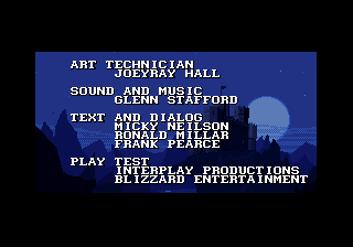 Avec l'aide du magicien Galadril, il envoya Kyle sur Terre, avec la pierre de lumière qu'il devait protéger. 20 ans plus tard, Kyle est désormais adulte et le Galadril le renvoie sur sa terre natale afin de libérer son peuple devenu esclave, et de mettre fin au règne de Sarlac... Afin d'étayer ce très bon scénario, Blizzard a fait le choix d'ouvrir son aventure sur une superbe introduction animée, accompagnée d'un texte explicatif (bien qu'il rentre moins dans les détails que la notice du jeu). C'est déjà une excellente chose car bien des jeux en font justement l'impasse (ce qui est vraiment dommage). A ça s'ajoute une petite cinématique de dialogues entre chaque zone, ainsi qu'une très bonne séquence d'épilogue, qui met fin au périple de Kyle Blackthorne (voilà sans doute pourquoi le jeu portait ce nom à l'origine) et au supplice de son peuple rendu esclave.