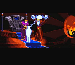 La pauvre version GBA souffre d'une réalisation qui pique les yeux ! C'est affreux et que dire de ces couleurs... à présent, la cartouche Super Nintendo fait à peine 8 Mb (étonnant pour un jeu sorti si tardivement - rappelons que la PlayStation et la Saturn sortaient à peine 3 mois plus tard au Japon), quand celle sur 32X fait 24 Mb et celle sur GBA pèse 32 Mb. Procédons dans le désordre pour une fois. Dans sa version origine, sur Super Nintendo donc, le jeu est très sombre et bien que chaque monde possède son design propre, on ne peut pas dire que les décors soient très variés (ça explique sans doute comment dans 8 pauvres Megabits, ils ont pu rentrer un jeu si long, agrémenté d'une si belle narration). Il n'empêche que malgré ce contraste un peu trop prononcé, les graphismes sont loin d'être désagréables. Les ennemis arborent un design d'orcs (ou de gobelins, c'est selon les goûts), comme quoi chez Blizzard, c'est un peu leur marque de fabrique (et oui n'oublions qu'ils sont derrière la série des Warcraft, sans doute l'un des licences mettant en avant les orcs, les plus connues... avec Le Seigneur des Anneaux bien sûr).