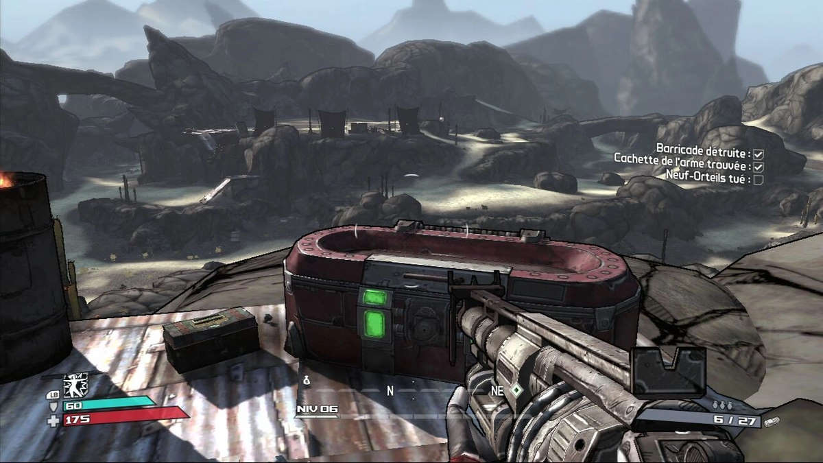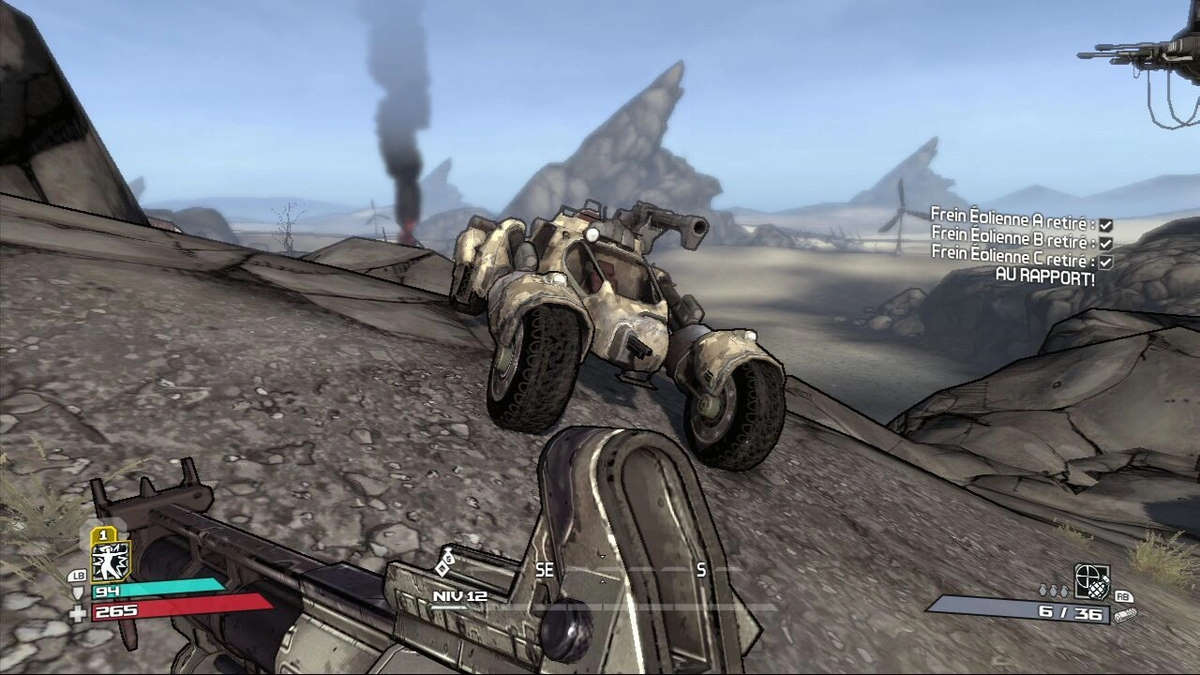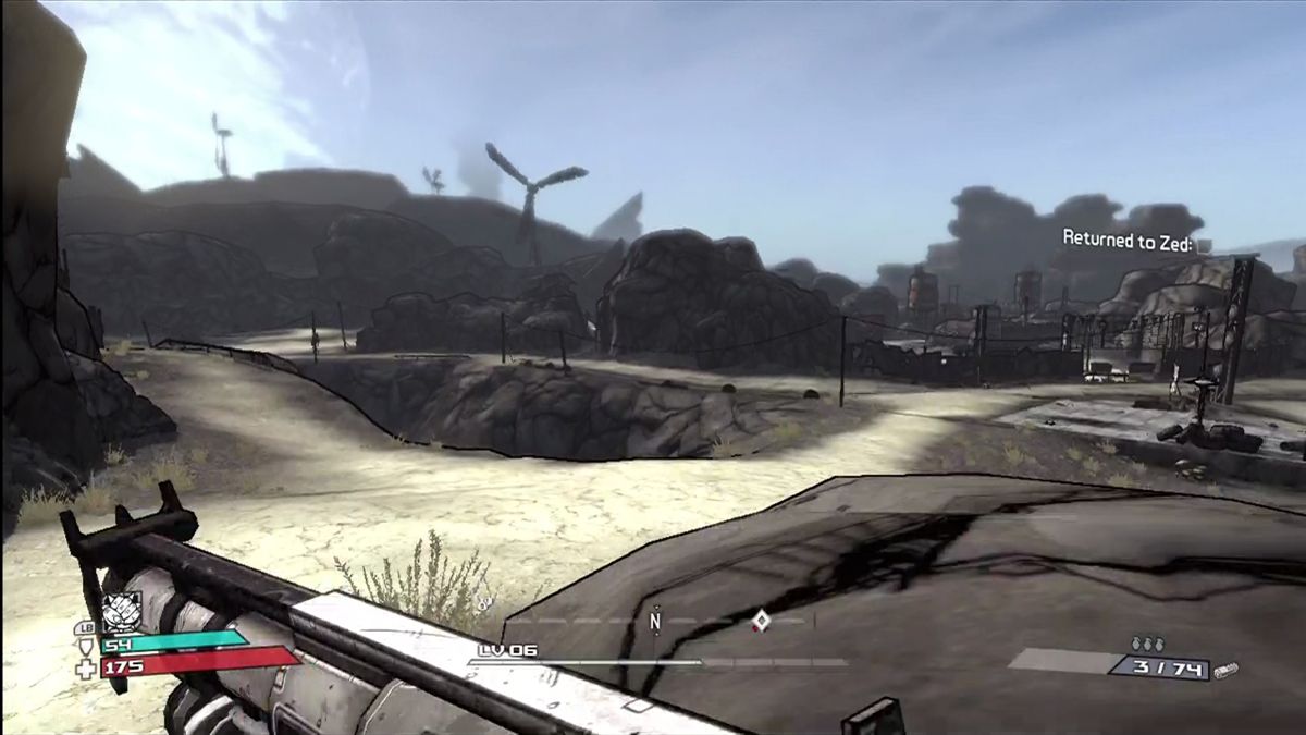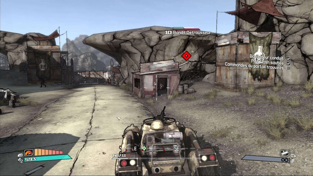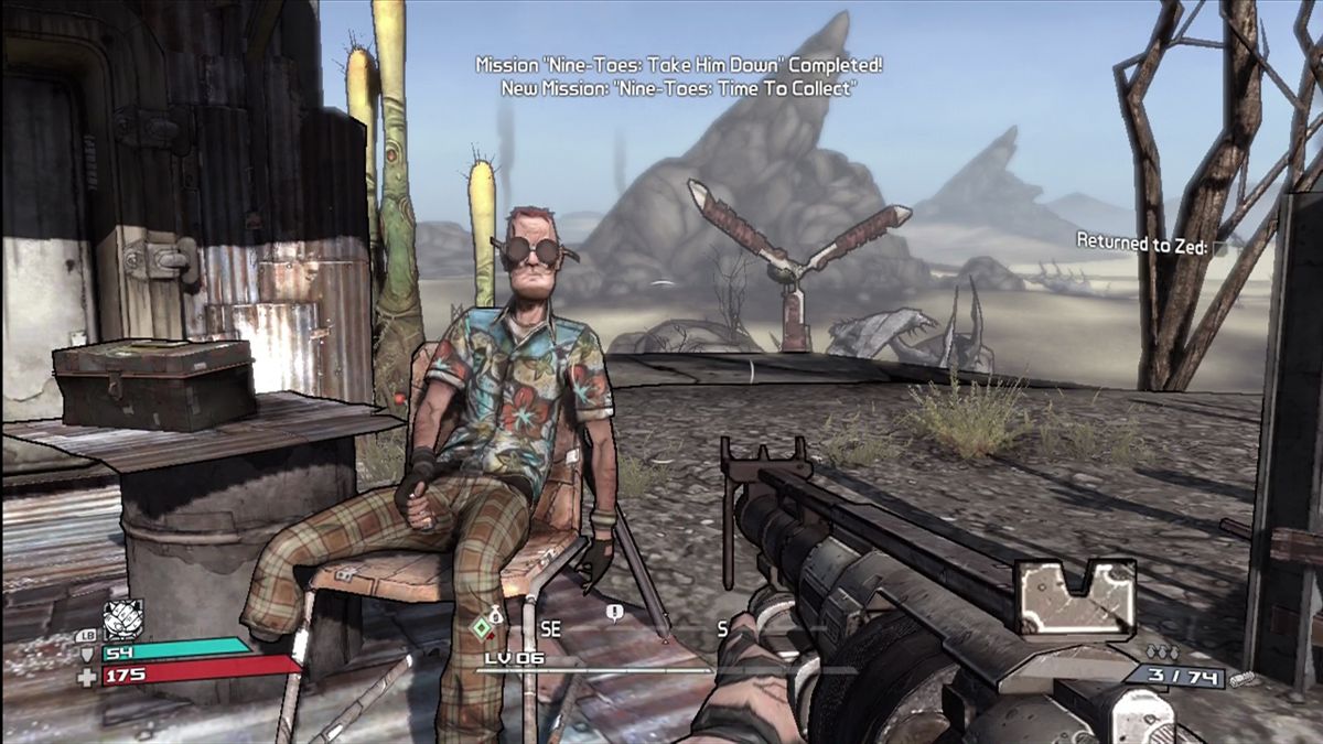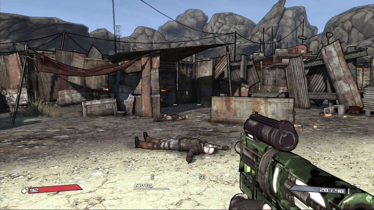 Alors que l'épisode 2 régale déjà les aficionados et qu'un 3e opus est espéré par les fans, je me suis mis (tardivement je l'admets) à Borderlands. Si bien sûr beaucoup d'ignares en veulent à Gearbox pour Duke Nukem Forever (alors qu'ils n'ont fait que recoller les morceaux, ils n'ont pas vraiment développés le jeu) ou Aliens : Colonial Marines (comme quoi, ils ne font pas que des bons jeux) personnellement ce studio m'aura marqué pour sa série des Brothers in Arms, sa collaboration sur la série Half-Life (adaptations et add-ons) et bien sûr les excellents Borderlands. Dans ce premier opus soyons honnêtes, ce n'est pas le scénario qui va vous scotcher. Bien que doublé en français et pourvu d'un bon humour (les Claptraps sont à mourir de rire lorsqu'ils dansent :) on débarque dans cet univers où on ne nous apprend presque rien (tout juste quelques messages audio) et où il faut trouver l'Arche. Evoluant dans un monde ouvert et désertique, le parallèle avec RAGE est très vite trouvé. Ayant connu le titre de Gearbox bien tard, aujourd'hui je suis étonné de voir à quel point le jeu d'id Software s'en est inspiré ! C'est presque du plagiat (il suffit de regarder les mutants, qui sont vraiment très/trop proches !).