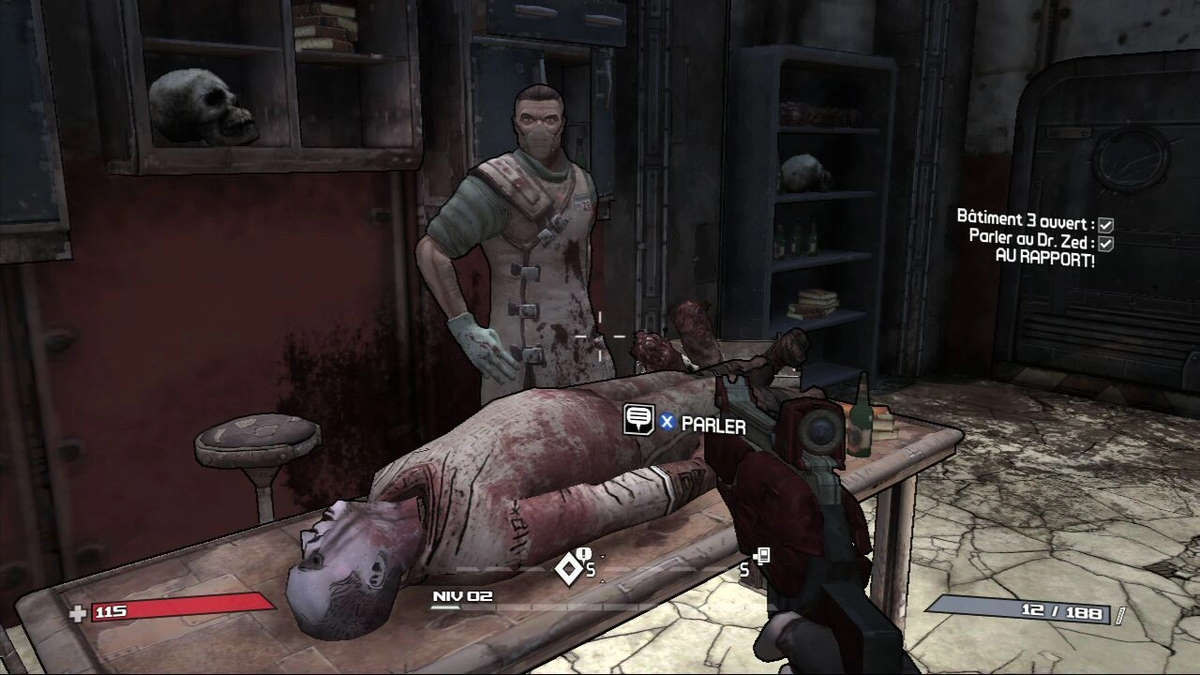 Ames sensibles, s'abstenir, pluies de sang en prévision ! jeu étant jouable jusqu'à 4 en co-opération, c'est donc une fine équipe que l'on pourra aligner face à l'hostile faune de Pandora. Le gameplay est donc simple mais efficace : le joueur ira chercher sa quête chez le PNJ ou sur le panneau de missions du coin, et on retrouve là aussi la marque classique du jeu d'action orienté RPG, puisque les missions se résumeront bien souvent à tuer tel méchant, récolter telles fleurs pour que grand mère fasse sa potion, ou aller activer telle babiole pour pouvoir passer à la prochaine ville ou zone de jeu, prendre son véhicule et aller détruire x ennemis...