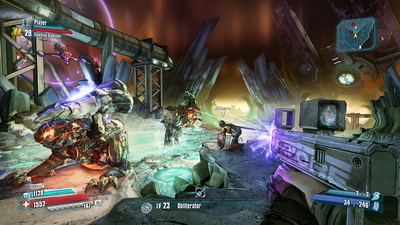 C'est un plaisir de retrouver tout le feeling de la série : grosse durée de vie, loot à gogo, l'originalité des armes, le nombre de missions... premier run et même sur la fin du jeu, les armes ne sont pas fofolles, et il est extrêmement rare de tomber sur un flingue de ouf. D'ailleurs on retrouve le système de clé en or, système ô combien pénible où seuls les plus assidus de Twitter, Facebook et autre, auront droit à des codes afin de déverrouiller les meilleures armes du jeu (et encore, vu le côté aléatoire des stats, il n'est pas rare de tomber à nouveau sur des merdes inutilisables). Je trouve ça vraiment frustrant de devoir chiner sur Internet pour obtenir ce type de clés, qu'on aurait très bien "looter" en jeu. En plus de ça, le système Shift est loin d'être fiable, il nous force à être "connecté" et bien des joueurs se sont déjà plaints de clés invalides ou de matos perdu en reprenant leur sauvegarde. Mais à mes yeux, le pire c'est encore les pierres lunaires (les "moon stones") qu'on glane au fil de nos exécutions ou bien caché dans des caisses voire des amas.