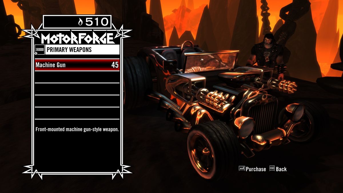 Brütal Legend alterne habilement stratégie et beat-them-all plus de ça, en voiture comme à pied, la caméra est assez capricieuse et se place souvent sous un angle disgracieux. Comme la caisse est au centre de quelques phases assez rigolotes (même si la jouabilité est désastreuse, elle n'est pas pénalisante pour autant), il est naturel de pouvoir l'upgrader. Ainsi il existe des garages de customisation, celles-là même où Ozzy Osbourne sera de bon conseil. Grâce à des points engrangés (les tribus de feu), obtenus en réalisant diverses missions (notamment secondaires, dont c'est le principal but) on pourra lui changer la peinture mais aussi doper ses propres armes (en ajoutant un pouvoir de feu ou en dopant ses capacités de déstruction) et "acheter" de nouvelles techniques. Car une fois les ballades terminées, Eddie est généralement à pattes et pour se défendre il possède 2 armes : Clémentine, une guitare électrique, ainsi qu'une grosse hache à double tranchant. Bon la hache, c'est pour jouer bourrin, on rentre dans le tas et ça marche. La gratte est déjà plus subtile puisqu'elle permet d'attaquer à distance (jet d'éclairs) et surtout, de faire des invocations.